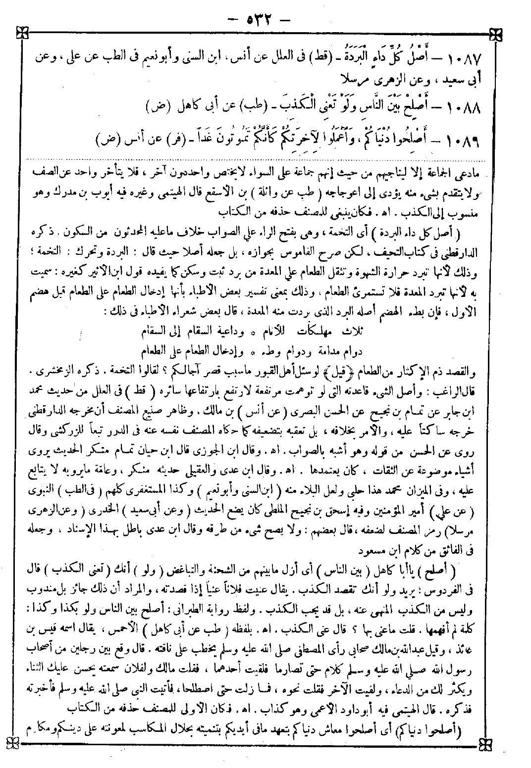 1088 - (أصلح) يا أبا كاهل (بين الناس) أي أزل ما بينهم من الشحنة والتباغض (ولو) أنك (تعني الكذب) قال في الفردوس يريد ولو أنك تقصد الكذب. يقال عنيت فلانا عنيا إذا قصدته والمراد أن ذلك جائز بل مندوب وليس من الكذب المنهي عنه بل قد يجب الكذب. ولفظ رواية الطبراني: أصلح بين الناس ولو بكذا وكذا: كلمة لم أفهمها. قلت ما عنى بها؟ قال عنى الكذب. أه. بلفظه