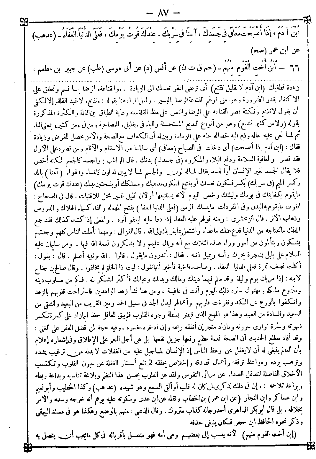 66 - (ابن أخت القوم منهم) لأنه ينسب إلى بعضهم وهي أمه فهو متصل بأقربائه في كل ما يجب أن يتصل به -[88]- كنصرة ومشورة ومودة وإفشاء سر ومعونة وبر وشفقة وإكرام ونحو ذلك. قال الطيبي: فمن اتصالية. ومن هذا التقرير تبين أنه لا حجة فيه لمن قال بتوريث ذوي الأرحام. قال ابن أبي جمرة: وحكمة ذكر ذلك إبطال ما كان عليه أهل الجاهلية من عدم الالتفات إلى أولاد البنات فضلا عن أولاد الأخوات حتى قال قائلهم: