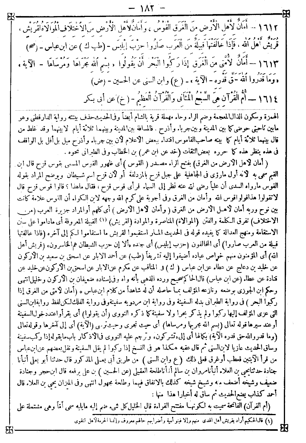 1612 - (أمان لأهل الأرض من الغرق) بفتح الراء مصدر (القوس) أي ظهور القوس المسمى بقوس قزح. قال ابن القيم: سمي به لأنه أول ما رؤي في الجاهلية على جبل قزح بالمزدلفة أو لأن قزح اسم شيطان ويوضح المراد بقوله القوس ما رواه السدي أن عليا رضي الله عنه نظر إلى السماء فرأى قوس قزح فقال ما هذا؟ قالوا قوس قزح قال لا تقولوا هذا قولوا قوس الله وأمان من الغرق وفي أجوبة علي كرم الله وجهه لابن الكواء أن القوس علامة كانت بين نوح وربه أمان لأهل الأرض من الغرق (وأمان لأهل الأرض) أي كلهم أو المراد جزيرة العرب (من الاختلاف) تفرق الكلمة والفتن (الموالاة) المناصرة والموادة (لقريش) (1) القبيلة المعروفة أي ما داموا على سنن الاستقامة ومنهج العدالة كما يفيده قوله في الحديث المار استقيموا لقريش ما استقاموا لكم إلى آخره (فإذا خالفتها قبيلة من العرب صاروا) أي المخالفون (حزب ابليس) أي جنده {ألا إن حزب الشيطان هم الخاسرون} (قريش أهل الله) أي المؤمنون منهم خواص عباده أضيفوا إليه تشريفا
