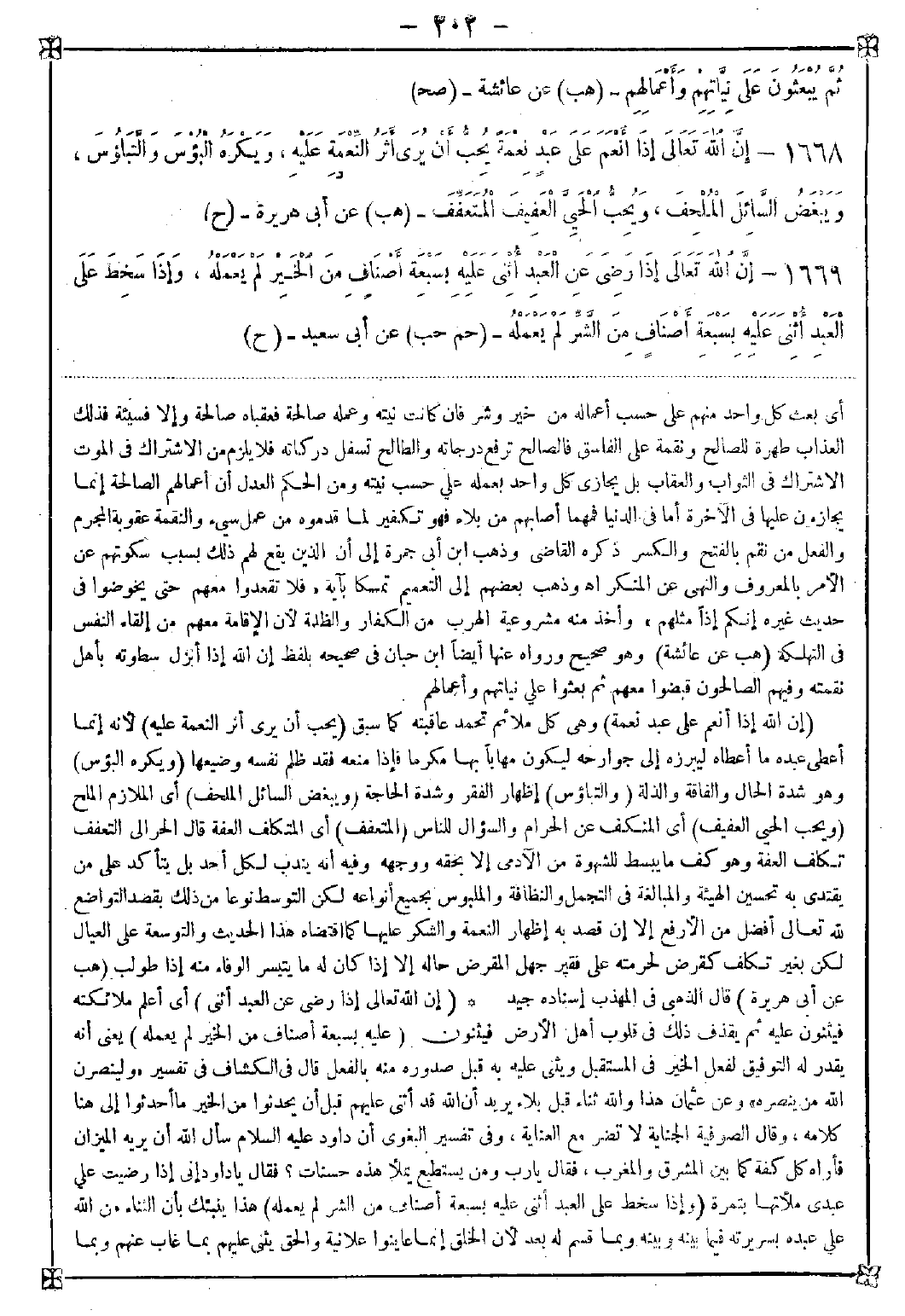 1668 - (إن الله إذا أنعم على عبد نعمة) وهي كل ملائم تحمد عاقبته كما سبق (يحب أن يرى أثر النعمة عليه) لأنه إنما أعطى عبده ما أعطاه ليبرزه إلى جوارحه ليكون مهابا بها مكرما فإذا منعه فقد ظلم نفسه وضيعها (ويكره البؤس) وهو شدة الحال والفاقة والذلة (والتباؤس) إظهار الفقر وشدة الحاجة (ويبغض السائل الملحف) أي الملازم الملح (ويحب الحيي العفيف) أي المنكف عن الحرام والسؤال للناس (المتعفف) أي المتكلف العفة قال الحرالي: التعفف تكلف العفة وهو كف ما يبسط للشهوة من الآدمي إلا بحقه ووجهه وفيه أنه يندب لكل أحد بل يتأكد على من يقتدي به تحسين الهيئة والمبالغة في التجمل والنظافة والملبوس بجميع أنواعه لكن التوسط نوعا من ذلك بقصد التواضع لله تعالى أفضل من الأرفع إلا إن قصد به إظهار النعمة والشكر عليها كما اقتضاه هذا الحديث والتوسعة على العيال لكن بغير تكلف كقرض لحرمته على فقير جهل المقرض إلا إذا كان له ما يتيسر الوفاء منه إذا طولب