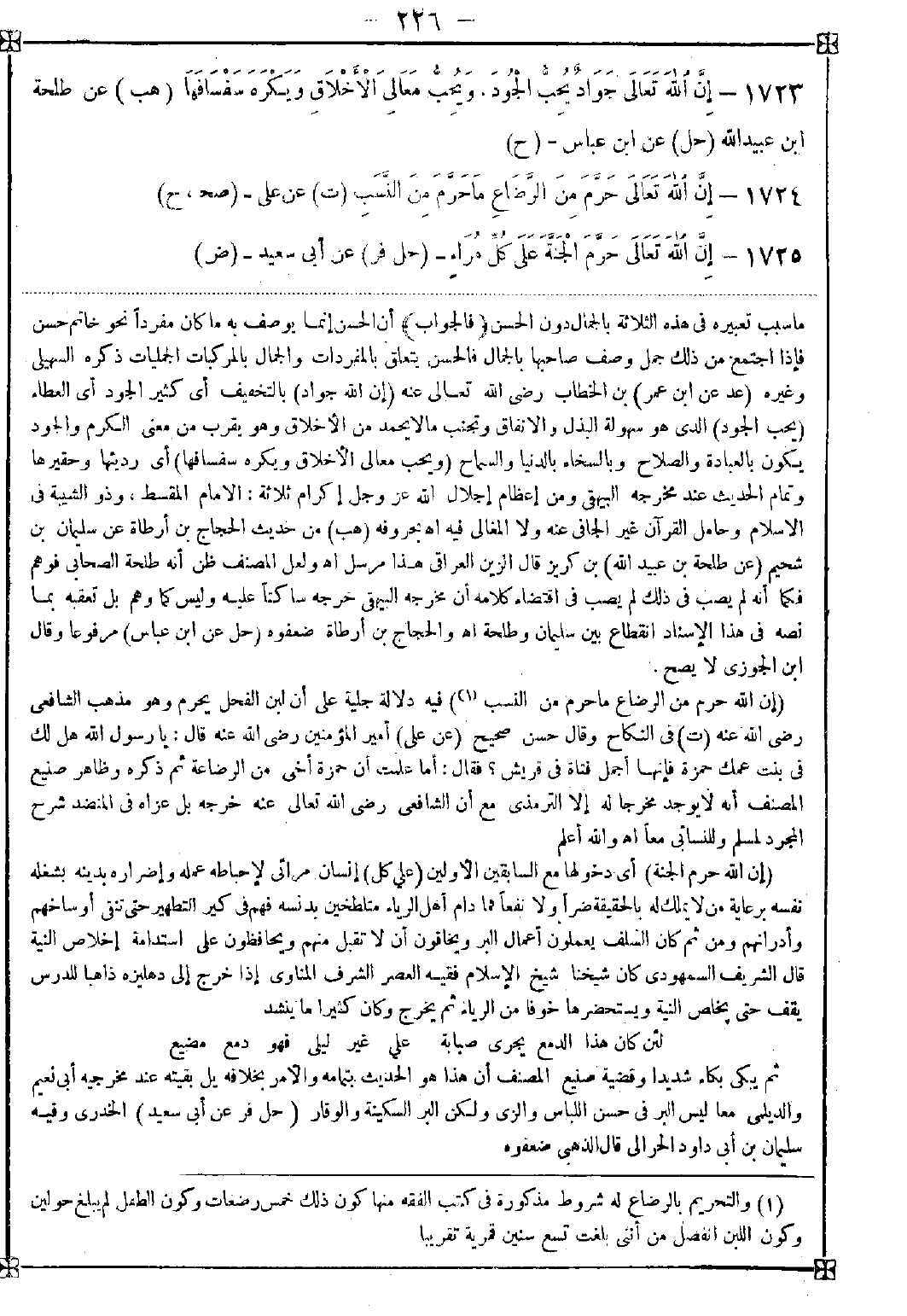 1724 - (إن الله حرم من الرضاع ما حرم من النسب (1)) فيه دلالة جلية على أن لبن الفحل يحرم وهو مذهب الشافعي رضي الله عنه