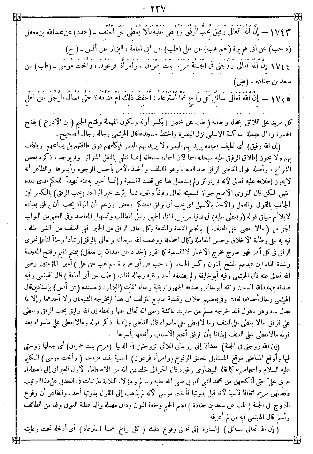 1745 - (إن الله تعالى سائل) إشارة إلى تحقق وقوع ذلك (كل راع عما استرعاه) أي أدخله تحت رعايته -[238]- (أحفظ ذلك أم ضيعه) بهمزة الاستفهام (حتى يسأل الرجل عن أهل بيته) أحفظهم أم ضيعهم فيعامل من قام بحق ما استرعاه عليه بفضله ويعامل من أهمله بعدله وما يعفو الله أكثر (1) قال الطيبي: فيه أن الراعي ليس مطلوبا لذاته وإنما أقيم لحفظ ما استرعاه فعليه أن لا يتصرف إلا بمأذون الشارع فيه وهو تمثيل ليس ألطف ولا أجمع ولا أبلغ منه وزاد في رواية فأعدوا للمسألة جوابا قالوا: وما جوابها قال: أعمال البر خرجه ابن عدي والطبراني قال ابن حجر: بسند حسن واستدل به على أن المكلف يؤاخذ بالتقصير في أمر من في حكمه وفيه بيان كذب الحديث الذي افتراه بعض المتعصبين لبني أمية ففي آداب القضاء للكرابيسي عن الشافعي رضي الله عنه بسنده دخل الزهري على الوليد بن عبد الملك فسأله عن حديث إن الله إذا استرعى عبدا للخلافة كتب له الحسنات ولم يكتب عليه السيئات فقال له كذب ثم تلا {يا داود إنا جعلناك خليفة في الأرض} إلى {بما نسوا يوم الحساب} فقال الوليد: إن الناس ليغروننا