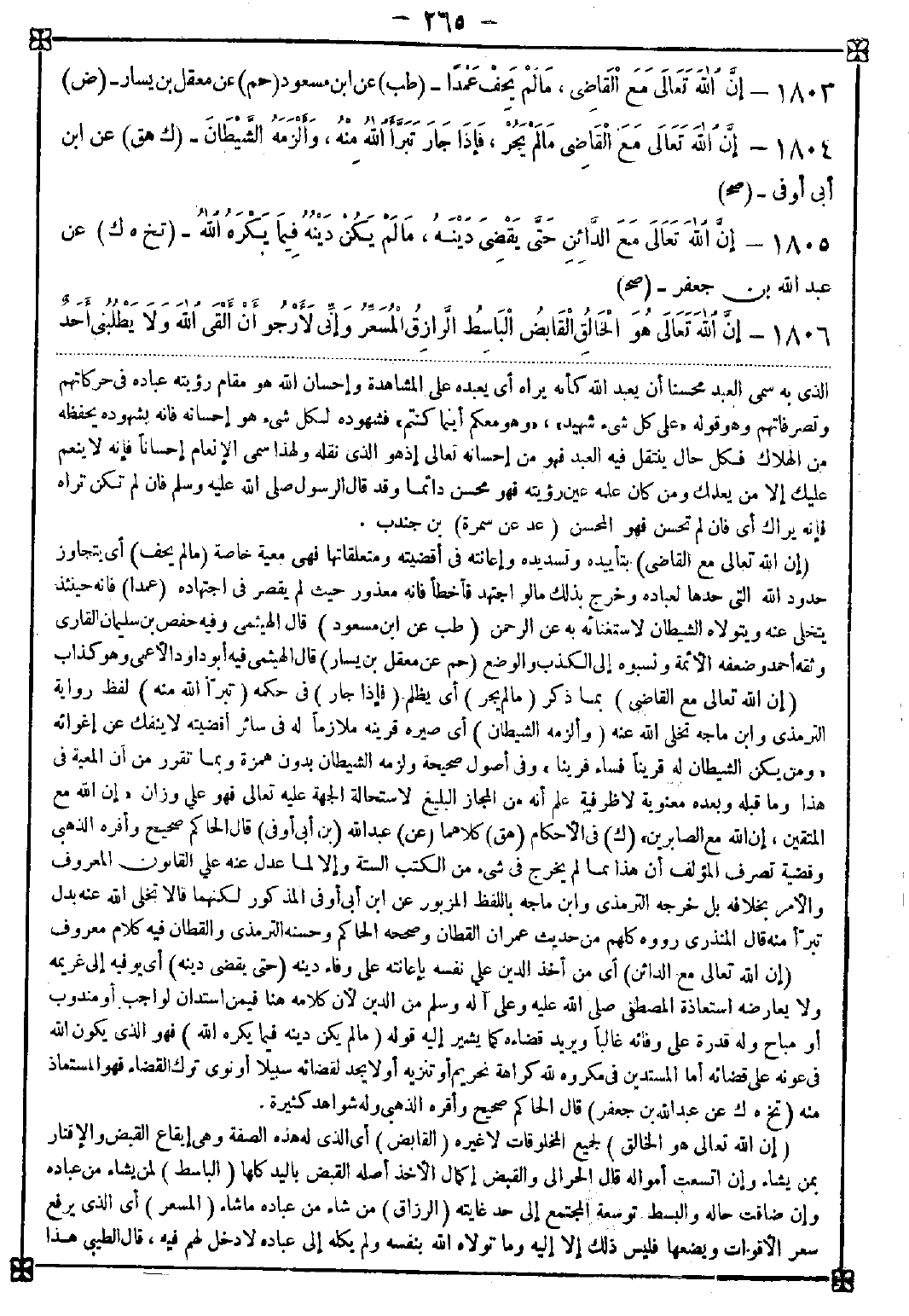 1803 - (إن الله تعالى مع القاضي) بتأييده وتسديده وإعانته في أقضيته ومتعلقاتها فهي معية خاصة (ما لم يحف) أي يتجاوز حدود الله التي حدها لعباده وخرج بذلك ما لو اجتهد فأخطأ فإنه معذور حيث لم يقصر في اجتهاده (عمدا) فإنه حينئذ يتخلى عنه ويتولاه الشيطان لاستغنائه به عن الرحمن