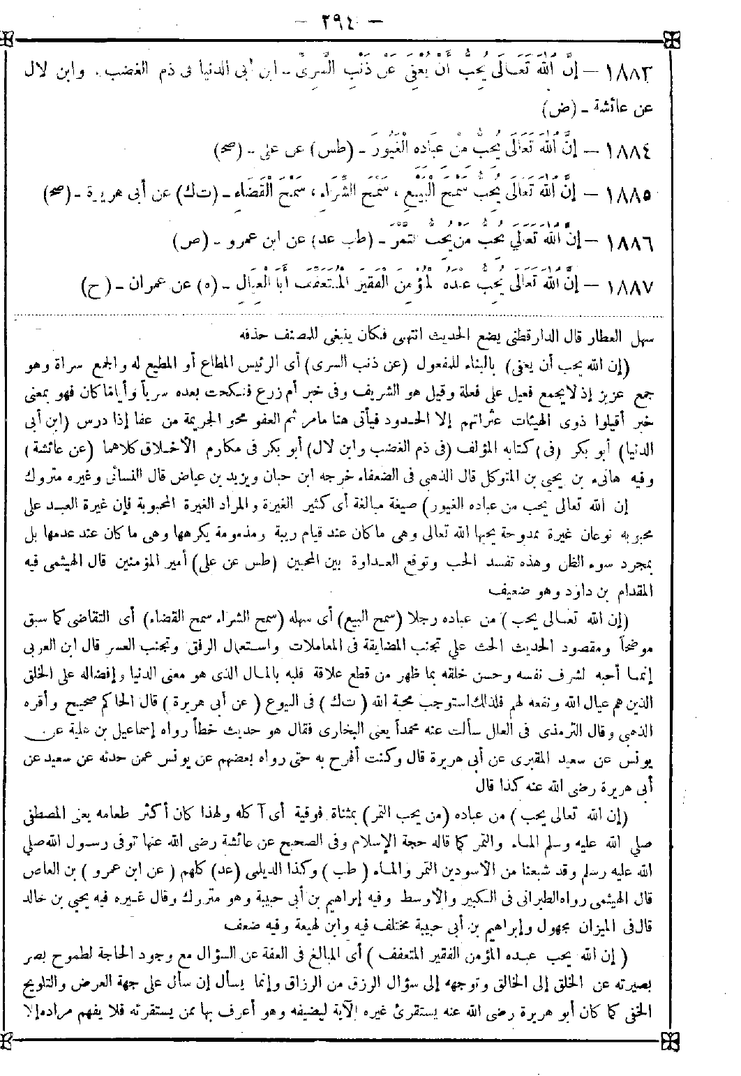 1885 - (إن الله تعالى يحب) من عباده رجلا (سمح البيع) أي سهله (سمح الشراء سمح القضاء) أي التقاضي كما سبق موضحا ومقصود الحديث الحث على تجنب المضايقة في المعاملات واستعمال الرفق وتجنب العسر قال ابن العربي: إنما أحبه لشرف نفسه وحسن خلقه بما ظهر من قطع علاقة قلبه بالمال الذي هو معنى الدنيا وإفضاله على الخلق الذين هم عيال الله ونفعه لهم فلذلك استوجب محبة الله