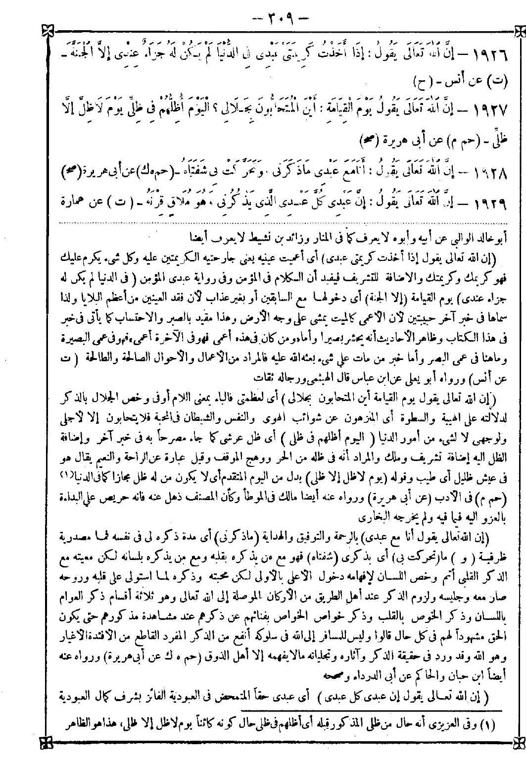 1929 - (إن الله تعالى يقول إن عبدي كل عبدي) أي عبدي حقا المتمحض في العبودية الفائز بشرف كمال العبودية -[310]- (الذي يذكرني وهو ملاق قرنه) بكسر الكاف وسكون الراء أي عدوه المقارن له المكافئ له في القتال فلا يغفل عن ذكر ربه حتى في حالة معاينة الهلاك ولا يشغله ما هو فيه من الاستشراف إلى الموت عن لزوم ذكر ربه بقلبه ولسانه. والقرن من يقاومك في علم أو قتال أو غير ذلك والجمع أقرن كحمل وأحمال