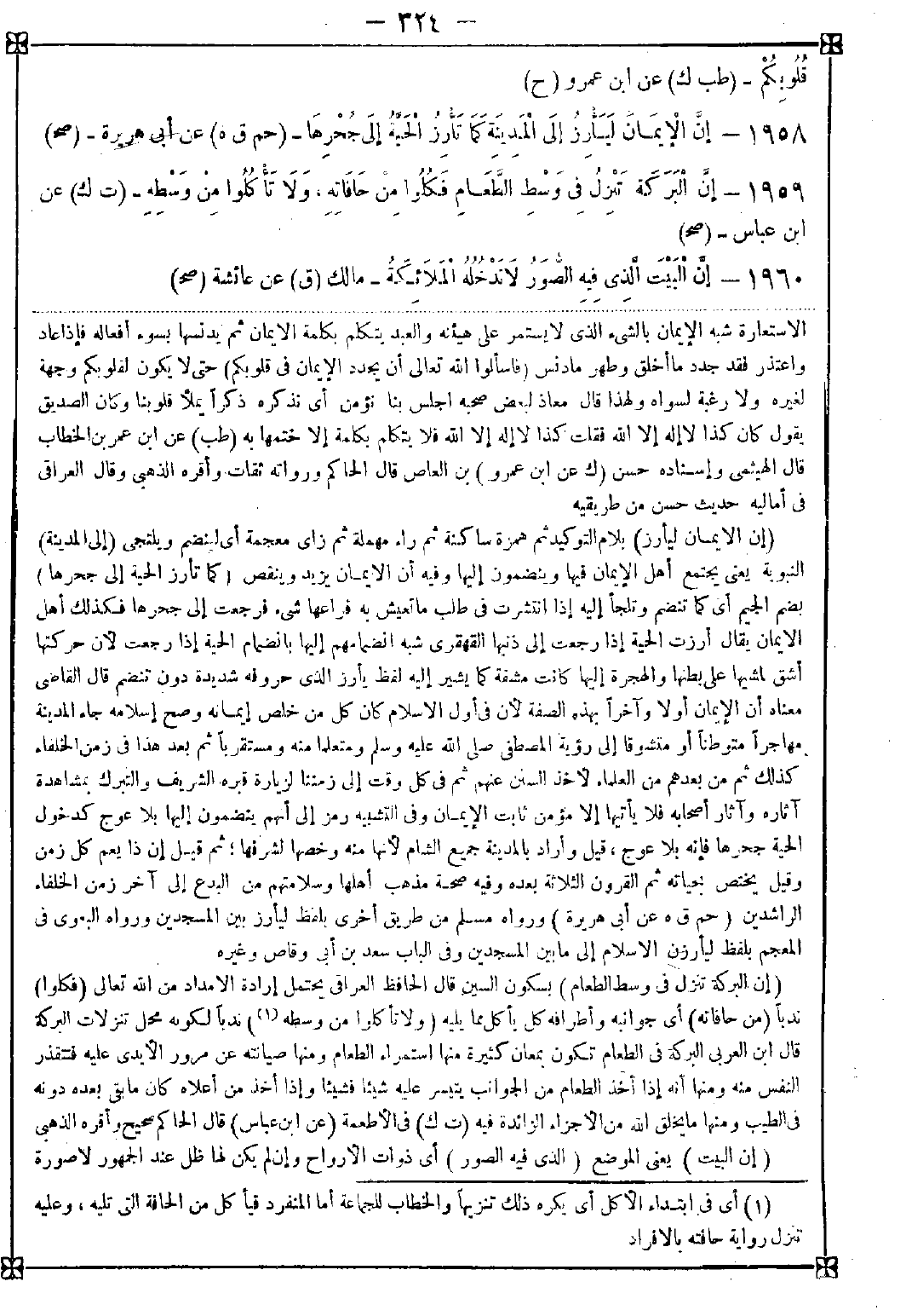 1958 - (إن الإيمان ليأرز) بلام التوكيد ثم همزة ساكنة ثم راء مهملة ثم زاي معجمة أي لينضم ويلتجي (إلى المدينة) النبوية يعني يجتمع أهل الإيمان فيها وينضمون إليها وفيه أن الإيمان يزيد وينقص (كما تأرز الحية إلى جحرها) بضم الجيم أي كما تنضم وتلجأ إليه إذا انتشرت في طلب ما تعيش به فراعها شيء فرجعت إلى جحرها فكذلك أهل الإيمان يقال أزرت الحية إذا رجعت إلى ذنبها القهقرى شبه انضمامهم إليها بانضمام الحية إذا رجعت لأن حركتها أشق لمشيها على بطنها والهجرة إليها كانت مشقة كما يشير إليه لفظ يأرز الذي حروفه شديدة دون تنضم قال القاضي: معناه أن الإيمان أولا وآخرا بهذه الصفة لأن في أول الإسلام كان كل من خلص إيمانه وصح إسلامه جاء المدينة مهاجرا متوطنا أو متشوقا إلى رؤية المصطفى صلى الله عليه وسلم ومتعلما منه ومستقربا ثم بعد هذا في زمن الخلفاء كذلك ثم من بعدهم من العلماء لأخذ السنن عنهم ثم في كل وقت إلى زمننا لزيارة قبره الشريف والتبرك بمشاهدة آثاره وآثار أصحابه فلا يأتيها إلا مؤمن ثابت الإيمان وفي التشبيه رمز إلى أنهم ينضمون إليها بلا عوج كدخول الحية جحرها فإنه بلا عوج قيل وأراد بالمدينة جميع الشام لأنها منه وخصها لشرفها ثم قيل إن ذا يعم كل زمن وقيل يختص بحياته ثم القرون الثلاثة بعده وفيه صحة مذهب أهلها وسلامتهم من البدع إلى آخر زمن الخلفاء الراشدين