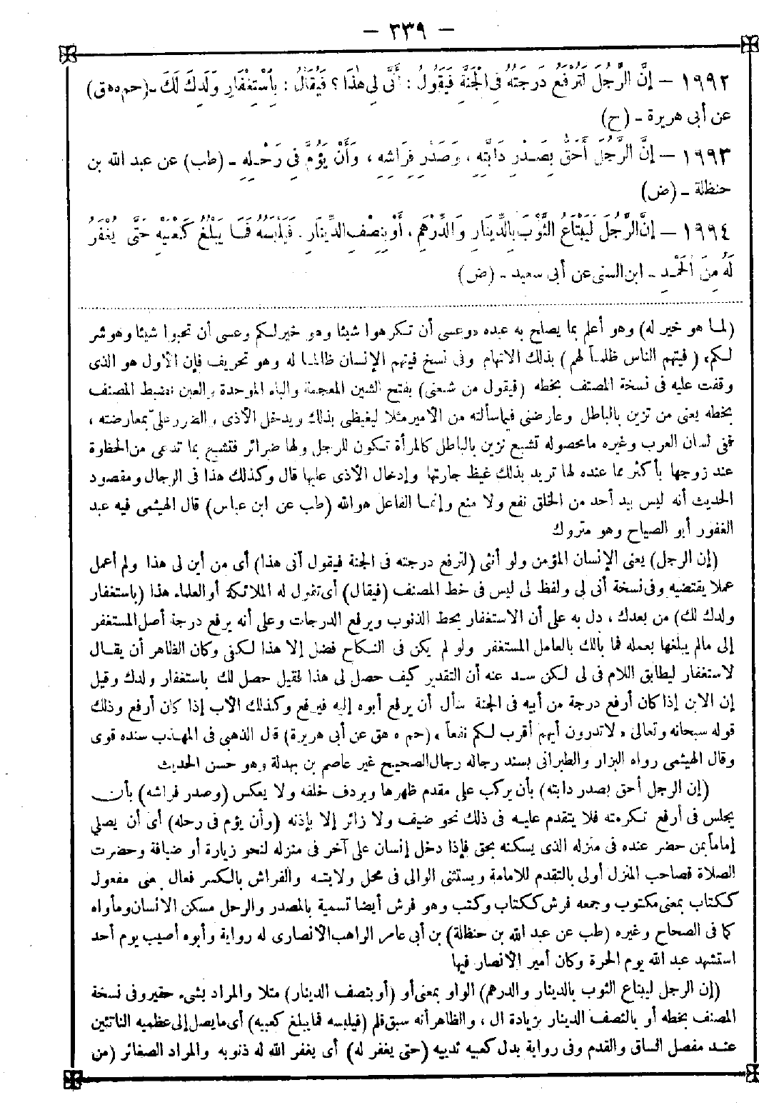 1992 - (إن الرجل) يعني الإنسان المؤمن ولو أنثى (لترفع درجته في الجنة فيقول أنى هذا) أي من أين لي هذا ولم أعمل عملا يقتضيه وفي نسخة أنى لي ولفظ لي ليس في خط المصنف (فيقال) أي تقول له الملائكة أو العلماء هذا (باستغفار ولدك لك) من بعدك دل به على أن الاستغفار يحط الذنوب ويرفع الدرجات وعلى أنه يرفع درجة أصل المستغفر إلى ما لم يبلغها بعمله فما بالك بالعامل المستغفر ولو لم يكن في النكاح فضل إلا هذا لكفى وكان الظاهر أن يقال لاستغفار ليطابق اللام في لي لكن سد عنه أن التقدير كيف حصل لي هذا فقيل حصل لك باستغفار ولدك وقيل إن الابن إذا كان أرفع درجة من أبيه في الجنة سأل أن يرفع أبوه إليه فيرفع وكذلك الأب إذا كان أرفع وذلك قوله سبحانه وتعالى {لا تدرون أيهم أقرب نفعا}