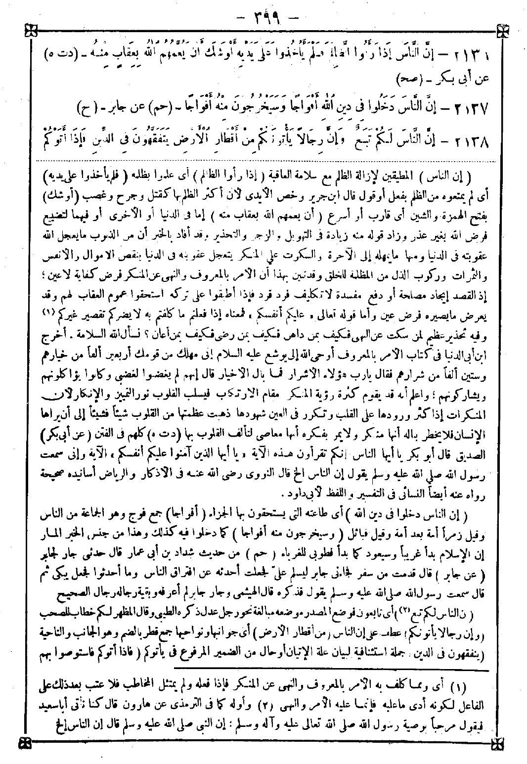 تنبيه: هذه الحاشية موجودة في أصل الكتاب (ص 400) ولم يذكر هناك رقمها ضمن الشرح فأبقينا الحاشية وجعلنا رقمها (2) في أنسب مكان وجدناه ملائما لهذه الفائدة ضمن شرح المناوي والله أعلم بالصواب. دار الحديث
