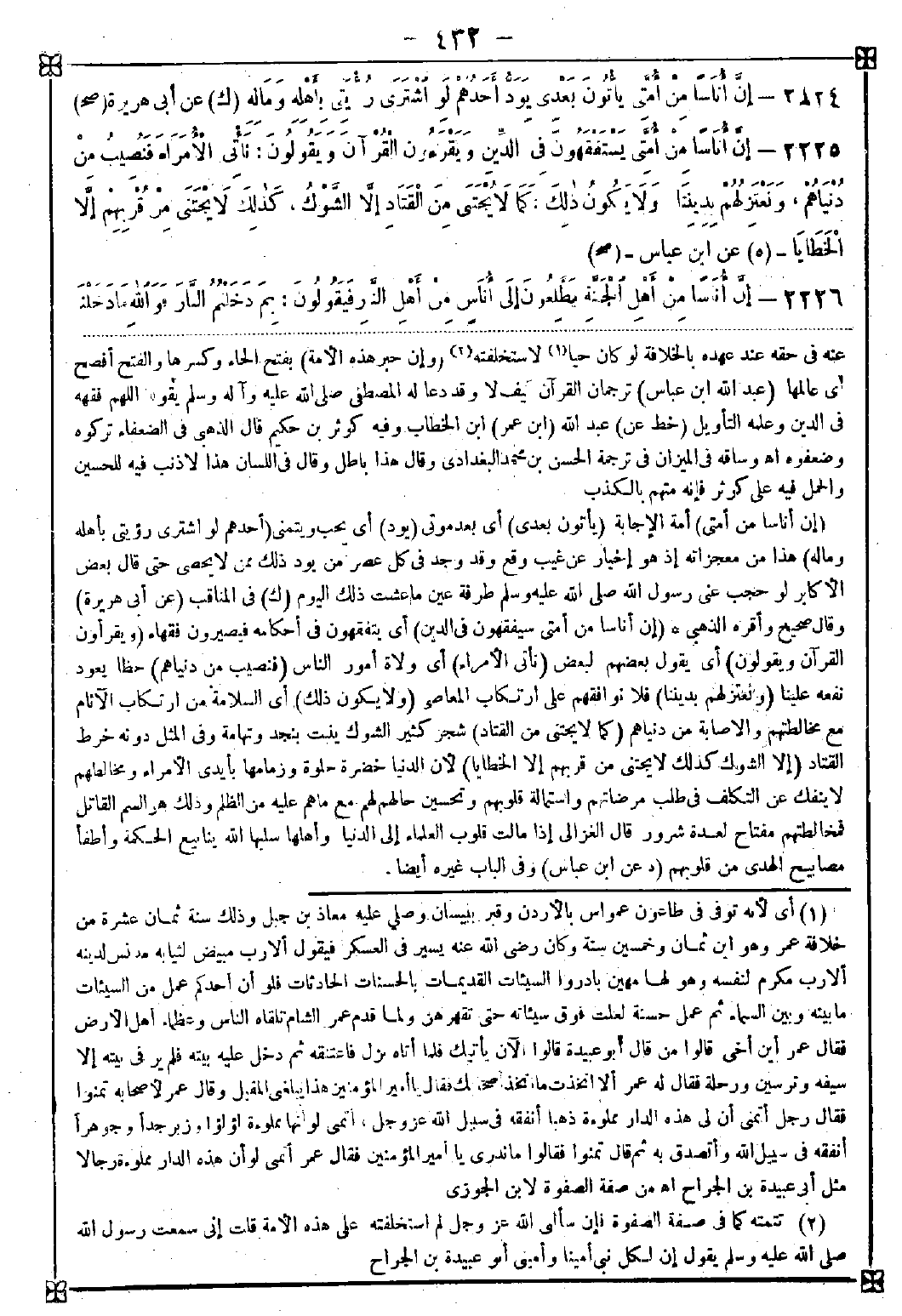 2225 - (إن أناسا من أمتي يستفقهون في الدين) أي يتفقهون في أحكامه فيصيرون فقهاء (ويقرأون القرآن ويقولون) أي يقول بعضهم لبعض (نأتي الأمراء) أي ولاة أمور الناس (فنصيب من دنياهم) حظا يعود نفعه علينا (ونعتزلهم بديننا) فلا نوافقهم على ارتكاب المعاصي (ولا يكون ذلك) أي السلامة من ارتكاب الآثام مع مخالطتهم والإصابة من دنياهم (كما لا يجتني من القتاد) شجر كثير الشوك ينبت بنجد وتهامة وفي المثل دونه خرط القتاد (إلا الشوك كذلك لا يجتنى من قربهم إلا الخطايا) لأن الدنيا خضرة وحلوة وزمامها بأيدي الأمراء ومخالطهم لا ينفك عن التكلف في طلب مرضاتهم واستمالة قلوبهم وتحسين حالهم لهم مع ما هم عليه من الظلم وذلك هو السم القاتل فمخالطتهم مفتاح لعدة شرور. قال الغزالي: إذا مالت قلوب العلماء إلى الدنيا وأهلها سلبها الله ينابيع الحكمة وأطفأ مصابيح الهدى من قلوبهم