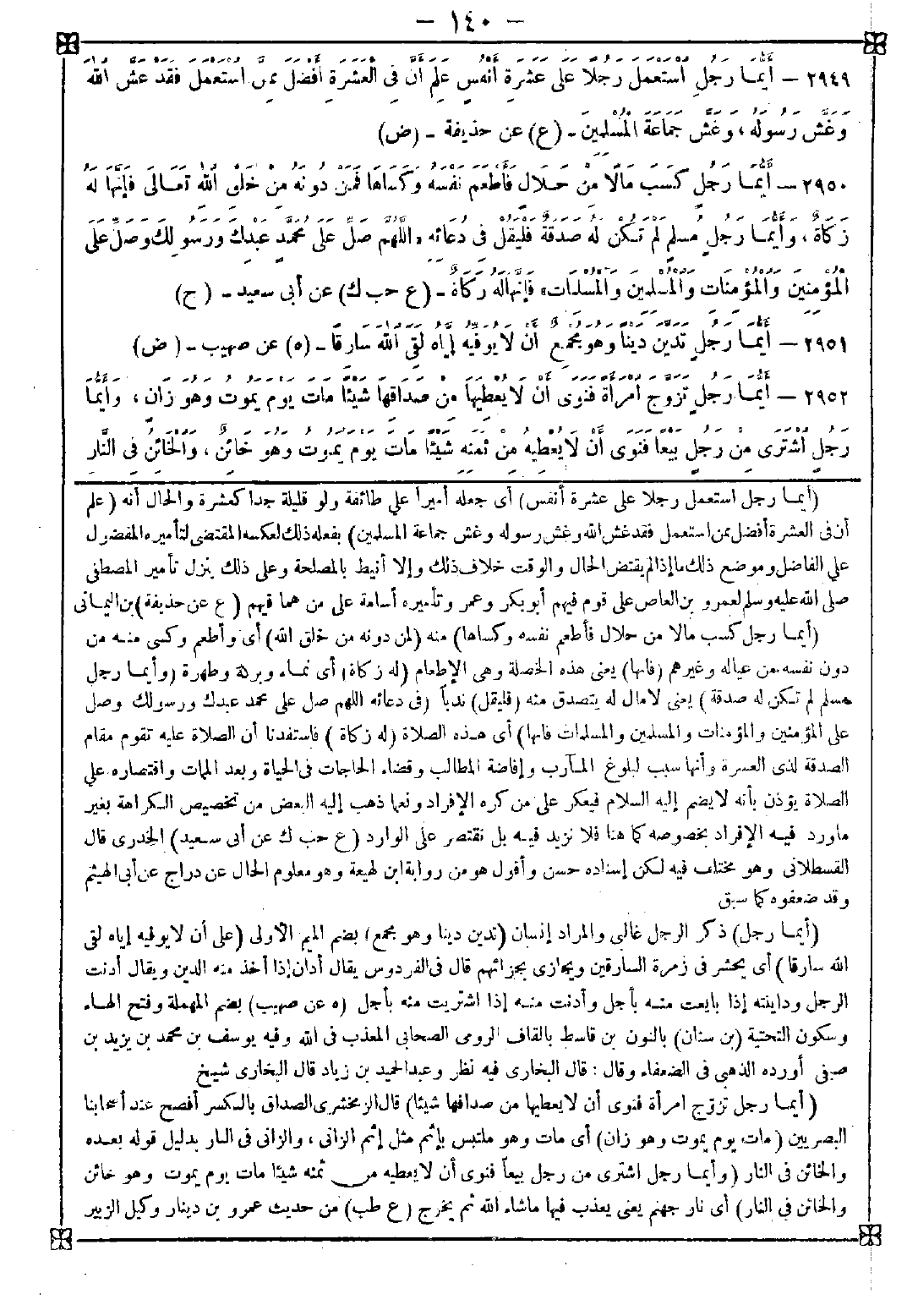 2952 - (أيما رجل تزوج امرأة فنوى أن لا يعطيها من صداقها شيئا) قال الزمخشري: الصداق بالكسر أفصح عند أصحابنا البصريين (مات يوم يموت وهو زان) أي مات وهو ملتبس بإثم مثل إثم الزاني والزاني في النار بدليل قوله بعده والخائن في النار (وأيما رجل اشترى من رجل بيعا فنوى أن لا يعطيه من ثمنه شيئا مات يوم يموت وهو خائن والخائن في النار) أي نار جهنم يعني يعذب فيها ما شاء الله ثم يخرج