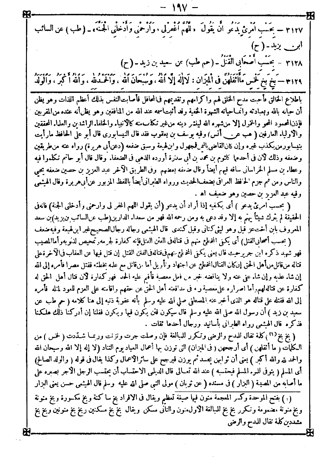 3129 - (بخ بخ (1)) كلمة تقال للمدح والرضا وتكرر للمبالغة فإن وصلت جرت ونونت وربما شددت (لخمس) من الكلمات (ما أثقلهن) أي أرجحهن (في الميزان) التي توزن بها أعمال العباد يوم التناد (لا إله إلا الله وسبحان الله والحمد لله والله أكبر) يعني أن ثوابهن يجسد ثم يوزن فيرجح على سائر الأعمال وكذا يقال في قوله (والولد الصالح) أي المسلم (يتوفى للمرء المسلم فيحتسبه) عند الله تعالى قال الديلمي: الاحتساب أن يحتسب الرجل الأجر بصبره على ما أصابه من المصيبة