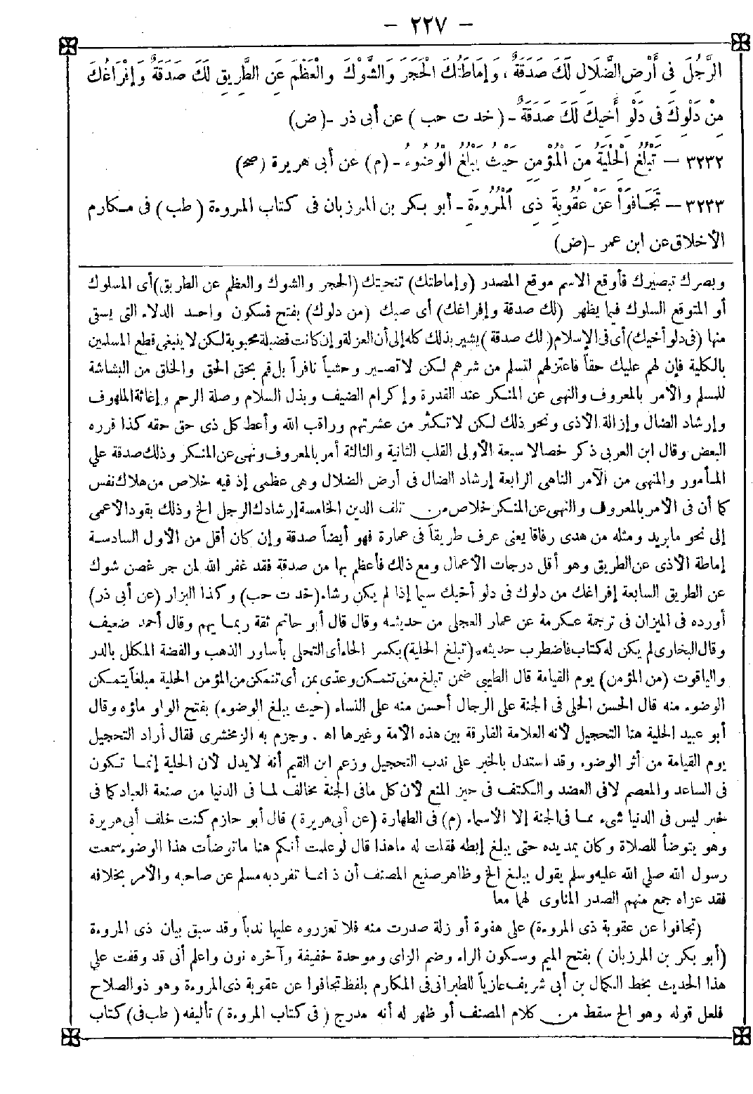 3233 - (تجافوا عن عقوبة ذي المروءة) على هفوة أو زلة صدرت منه فلا تعزروه عليها ندبا وقد سبق بيان ذي المروءة