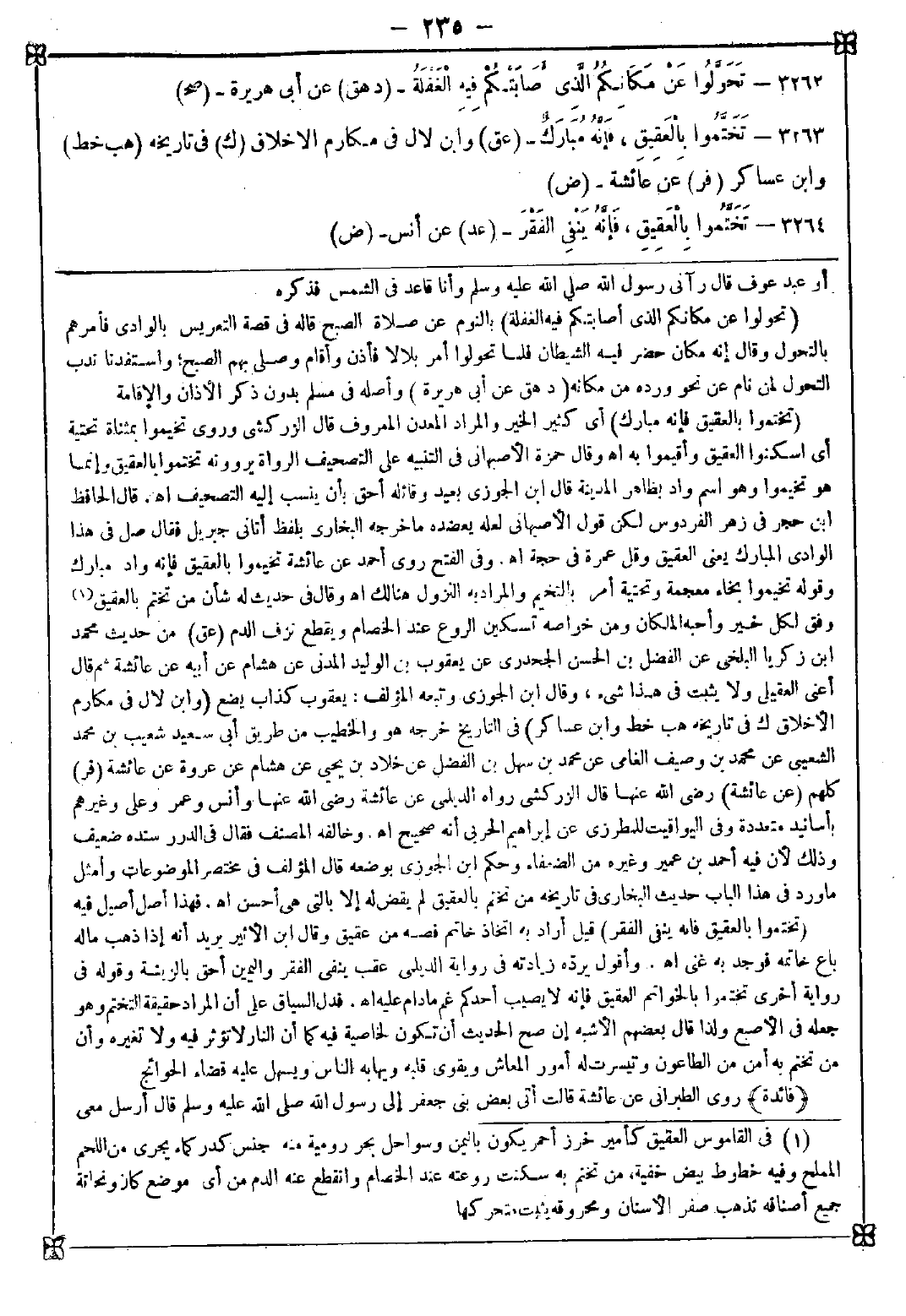 3263 - (تختموا بالعقيق فإنه مبارك) أي كثير الخير والمراد المعدن المعروف قال الزركشي: وروى تخيموا بمثناة تحتية أي اسكنوا العقيق وأقيموا به وقال حمزة الأصبهاني في التنبيه على التصحيف: الرواة يروونه تختموا بالعقيق وإنما هو تخيموا وهو اسم واد بظاهر المدينة قال ابن الجوزي: بعيد وقائله أحق بأن ينسب إليه التصحيف اه. قال الحافظ ابن حجر في زهر الفردوس: لكن قول الأصبهاني لعله يعضده ما خرجه البخاري بلفظ أتاني جبريل فقال: صل في هذا الوادي المبارك يعني العقيق وقل عمرة في حجة اه. وفي الفتح روى أحمد عن عائشة تخيموا بالعقيق فإنه واد مبارك وقوله تخيموا بخاء معجمة وتحتية أمر بالتخيم والمراد به النزول هنالك اه. وقال في حديث له شأن من تختم بالعقيق (1) وفق لكل خير وأحبه الملكان ومن خواصه تسكين الروع عند الخصام ويقطع نزف الدم