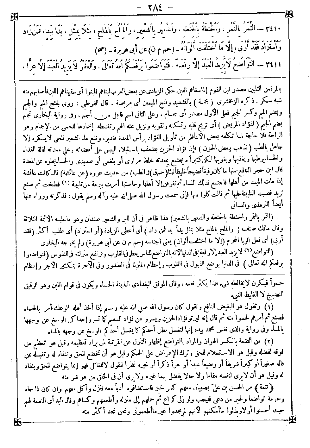 3410 - (التمر بالتمر والحنطة بالحنطة والشعير بالشعير) هذا ظاهر في أن البر والشعير صنفان وهو ما عليه الأئمة الثلاثة وقال مالك صنف (والملح بالملح مثلا بمثل يدا بيد فمن زاد) أي أعطى الزيادة (أو استزاد) أي طلب أكثر (فقد أربى) أي فعل الربا المحرم (إلا ما اختلفت ألوان) يعني أجناسه