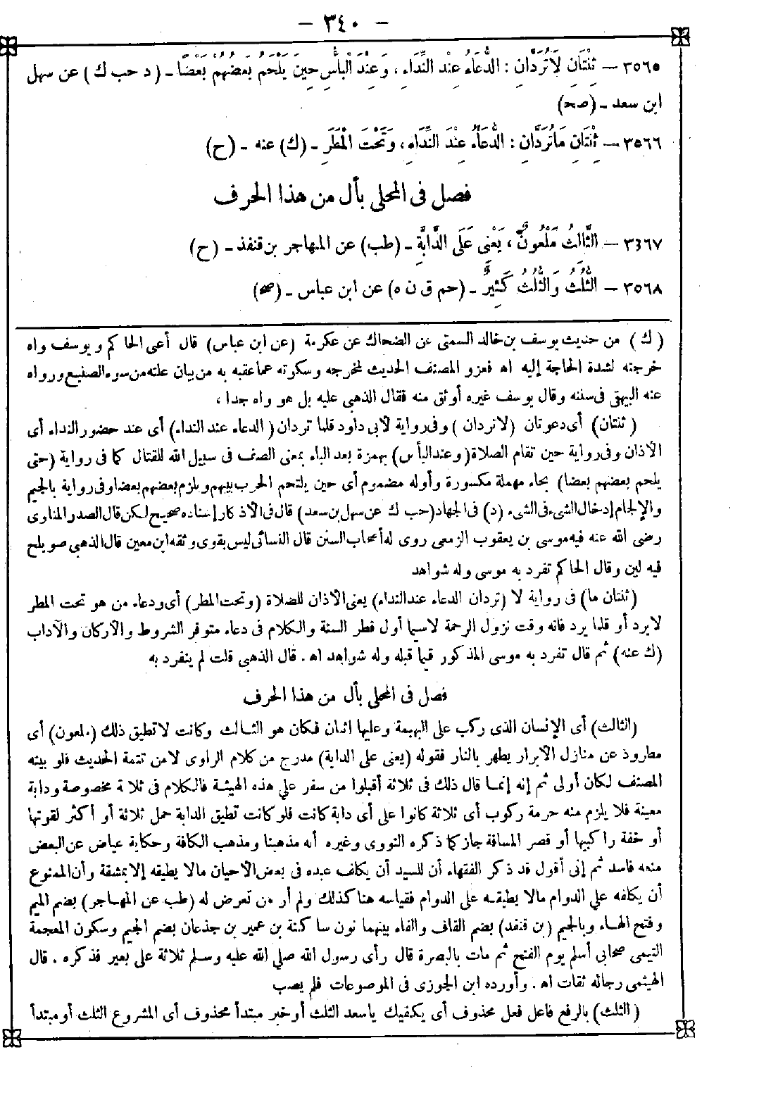 3568 - (الثلث) بالرفع فاعل فعل محذوف أي يكفيك يا سعد الثلث أو خبر مبتدأ محذوف أي المشروع الثلث أو مبتدأ -[341]- خبره محذوف أي الثلث كافيك وبالنصب على الإغراء أو بفعل مضمر أو أعط الثلث (والثلث كثير) بموحدة أو بمثلثة شك الراوي والأكثر المثلثة أي هو كثير بالنسبة لما دونه في الوصية وهو مسوق لبيان الجواز بالثلث وأن الأولى أن ينقص عنه أو هو بيان لكون التصدق بالثلث أكمل أي أكثر أجرا والأول هو المتبادر إلى الفهم ومن ثم ذهب الشافعي إلى أنه يسن النقص عن الثلث إن كان ورثته فقراء وقد أجمعوا على جواز الوصية بالثلث وكذا بأكثر إن أجازها الورثة