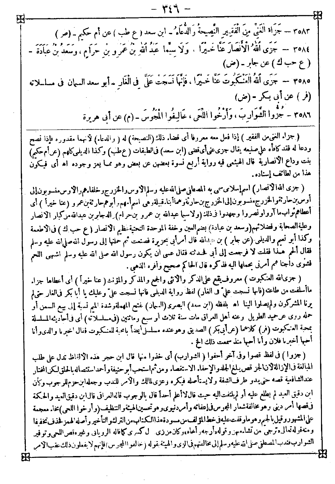 -[346]- 3583 - (جزاء الغني من الفقير) إذا فعل معه معروفا أي قضاء ذلك (النصيحة) له (والدعاء) لأنهما مقدوره فإذا نصح ودعا له فقد كافأه على صنيعه يقال جزى عني أي قضى