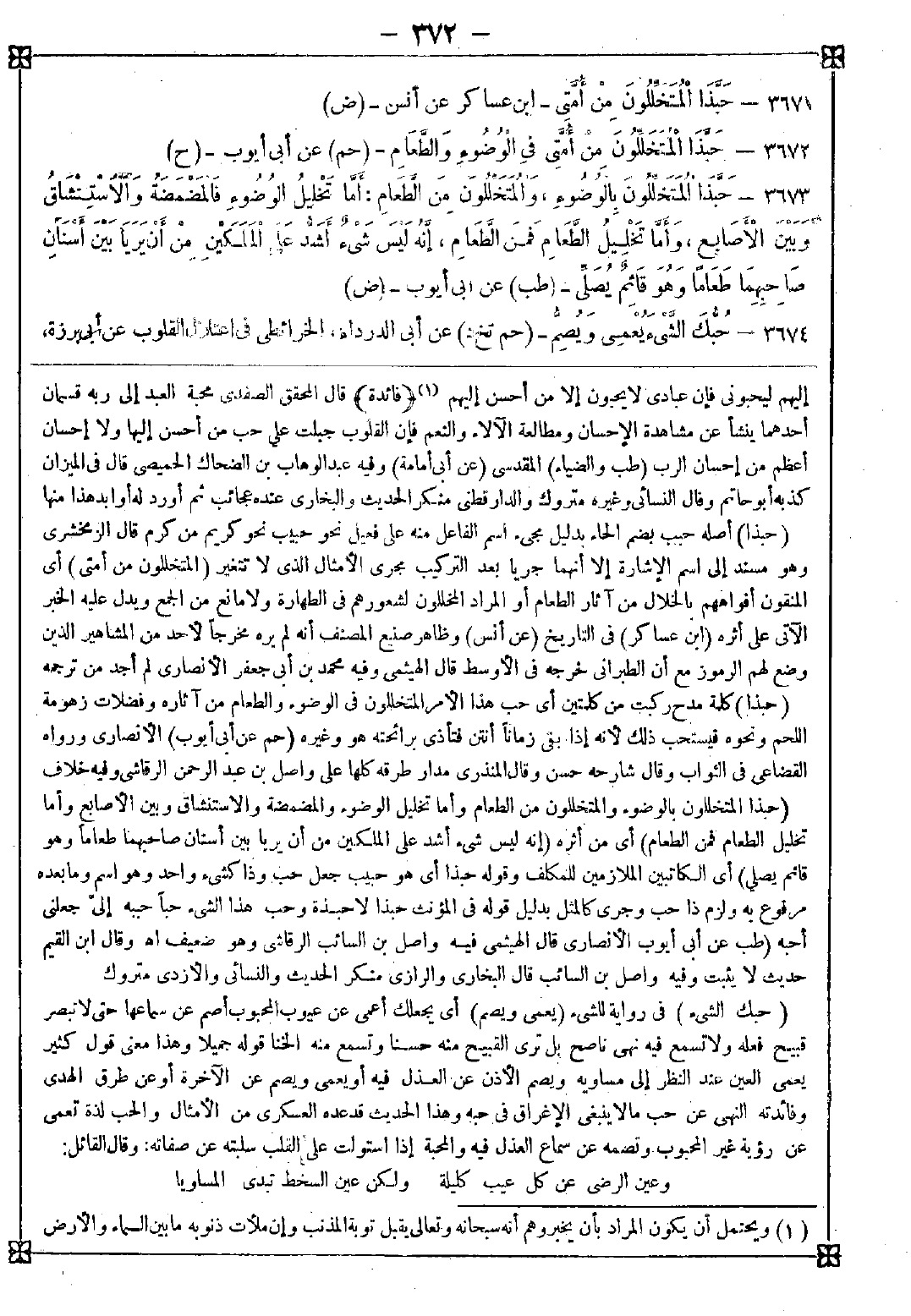 3672 - (حبذا) كلمة مدح ركبت من كلمتين أي حب هذا الأمر (المتخللون من أمتي في الوضوء والطعام) من آثاره وفضلات زهومة اللحم ونحوه فيستحب ذلك لأنه إذا بقي زمانا أنتن فتأذى برائحته هو وغيره