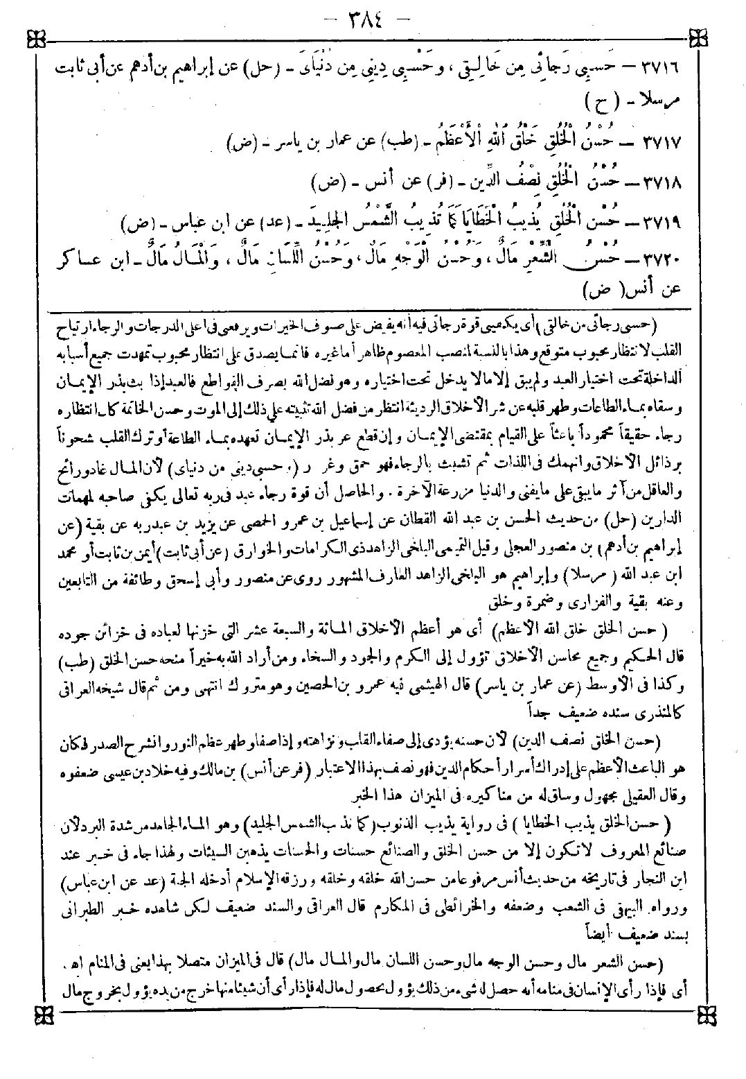 3718 - (حسن الخلق نصف الدين) لأن حسنه يؤدي إلى صفاء القلب ونزاهته وإذا صفا وطهر عظم النور وانشرح الصدر فكان هو الباعث الأعظم على إدراك أسرار أحكام الدين فهو نصف بهذا الاعتبار