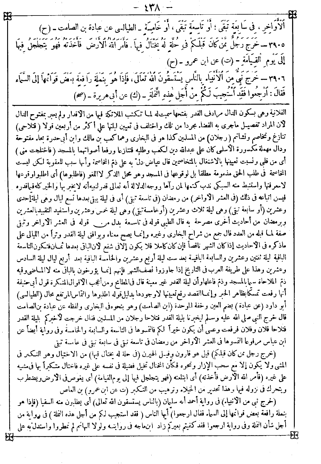 3905 - (خرج رجل ممن كان قبلكم) قيل هو قارون وقيل الهيرن (في حلة له يختال فيها) من الاحتيال وهو التكبر في المشي ولا يكون إلا مع سحب الإزار ونحوه فكأن المختال تخيل فضيلة في نفسه على غيره فاختال متكبرا بها في مشيه على غيره (فأمر الله الأرض فأخذته) أي ابتلعته (فهو يتجلجل فيها إلى يوم القيامة) أي يغوص في الأرض ويضطرب ويتحرك في نزوله فيها وهذا تحذير من الخيلاء وترهيب من التكبر