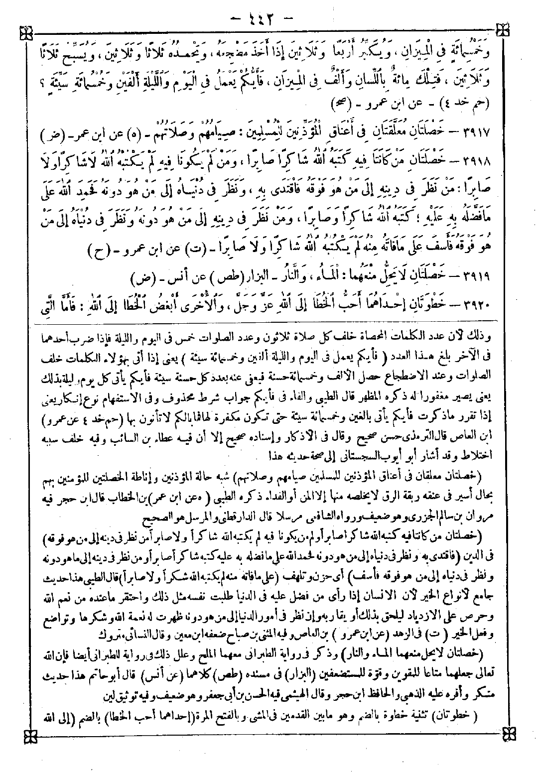 3919 - (خصلتان لا يحل منعهما الماء والنار) وذكر في رواية الطبراني معهما الملح وعلل ذلك في رواية للطبراني أيضا فإن الله تعالى جعلهما متاعا للمقوين وقوة للمستضعفين