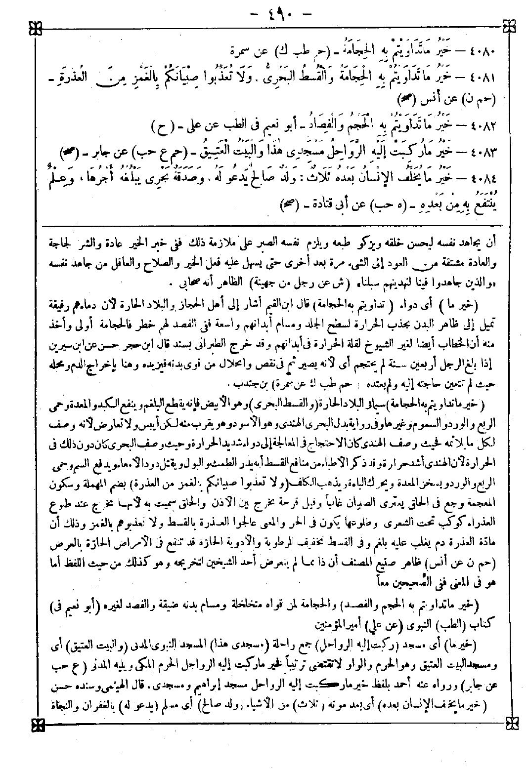 4082 - (خير ما تداويتم به الحجم والفصد) والحجامة لمن قواه متخلخلة ومسام بدنه ضيقة والفصد لغيره
