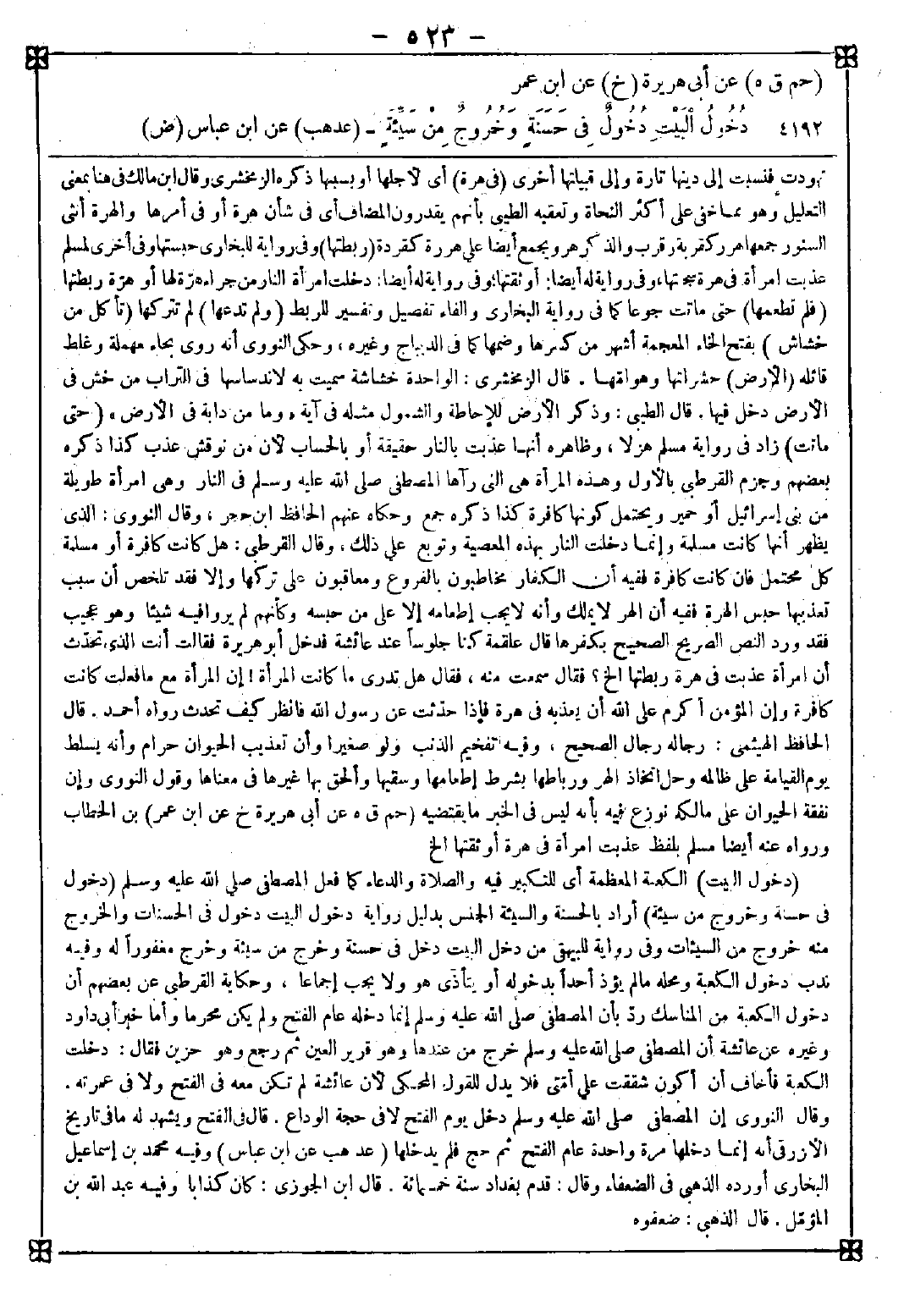 4192 - (دخول البيت) الكعبة المعظمة أي للتكبير فيه والصلاة والدعاء كما فعل المصطفى صلى الله عليه وسلم (دخول في حسنة وخروج من سيئة) أراد بالحسنة والسيئة الجنس بدليل رواية دخول البيت دخول في الحسنات والخروج منه خروج من السيئات وفي رواية للبيهقي من دخل البيت دخل في حسنة وخرج من سيئة مغفورا له وفيه ندب دخول الكعبة ومحله ما لم يؤذ أحدا بدخوله أو ينادي هو ولا يجب إجماعا وحكاية القرطبي عن بعضهم أن دخول الكعبة من المناسك رد بأن المصطفى صلى الله عليه وسلم إنما دخله عام الفتح ولم يكن محرما وأما خبر أبي داود وغيره عن عائشة أن المصطفى صلى الله عليه وسلم خرج من عندها وهو قرير العين ثم رجع وهو حزين فقال: دخلت الكعبة فأخاف أن أكون شققت على أمتي فلا يدل للقول المحكي لأن عائشة لم تكن معه في الفتح ولا في عمرته وقال النووي: إن المصطفى صلى الله عليه وسلم دخل يوم الفح لا في حجة الوداع. قال في الفتح: ويشهد له ما في تاريخ الأزرقي أنه إنما دخلها مرة واحدة عام الفتح ثم حج فلم يدخلها