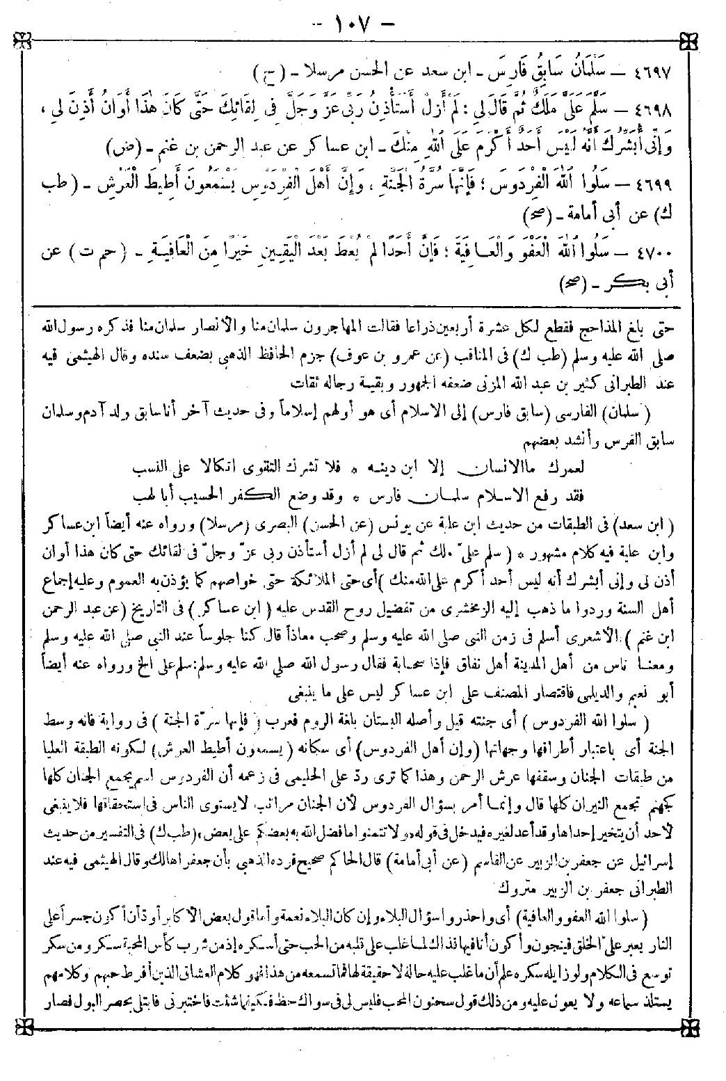 4697 - (سلمان) الفارسي (سابق فارس) إلى الإسلام أي هو أولهم إسلاما وفي حديث آخر أنا سابق ولد آدم وسلمان سابق الفرس وأنشد بعضهم: