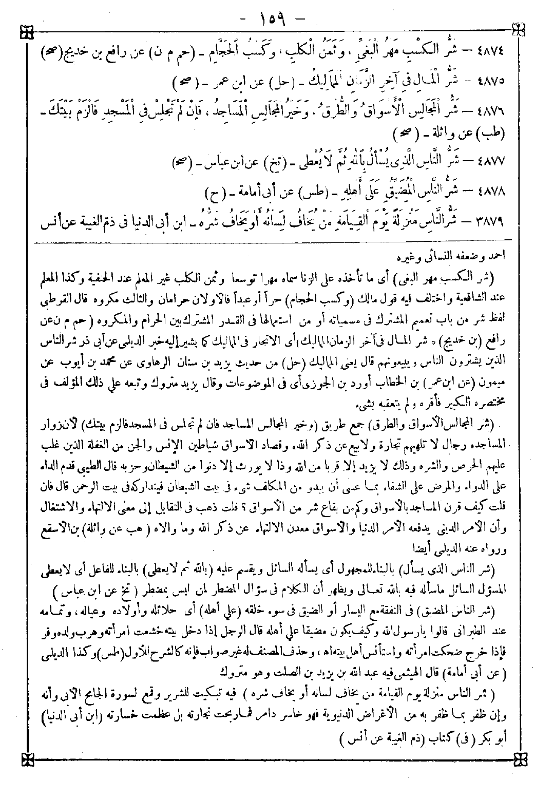 4874 - (شر الكسب مهر البغي) أي ما تأخذه على الزنا سماه مهرا توسعا (وثمن الكلب) غير المعلم عند الحنفية وكذا المعلم عند الشافعية واختلف فيه قول مالك (1) (وكسب الحجام) حرا أو عبدا فالأولان حرامان والثالث مكروه قال القرطبي: لفظ شر من باب تعميم المشترك في مسمياته أو من استعمالها في القدر المشترك بين الحرام والمكروه