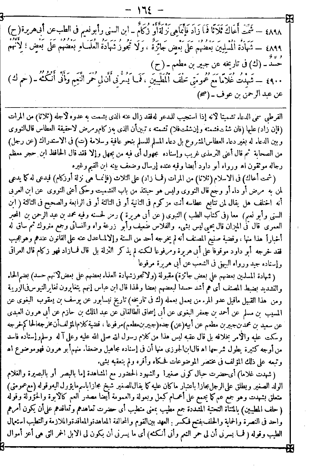 4899 - (شهادة المسلمين بعضهم على بعض جائزة) مقبولة (ولا تجوز شهادة العلماء بعضهم على بعض لأنهم حسد) بضم الحاء والتشديد بضبط المصنف أي هم أشد حسدا لبعضهم بعضا ولهذا قال ابن عباس: إنهم يتغايرون تغاير التيوس في الزريبة ومن هذا القبيل ما قيل: عدو المرء من يعمل بعمله. (1)