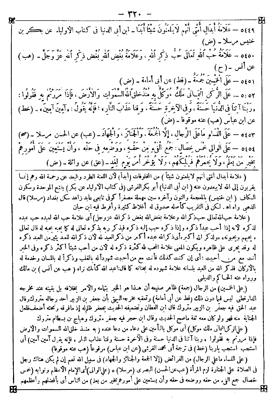 -[320]- 5449 - (علامة أبدال أمتي أنهم لا يلعنون شيئا) من المخلوقات (أبدا) لأن اللعنة الطرد والبعد عن رحمة الله وهم إنما يقربون إلى الله لا يبعدون عنه