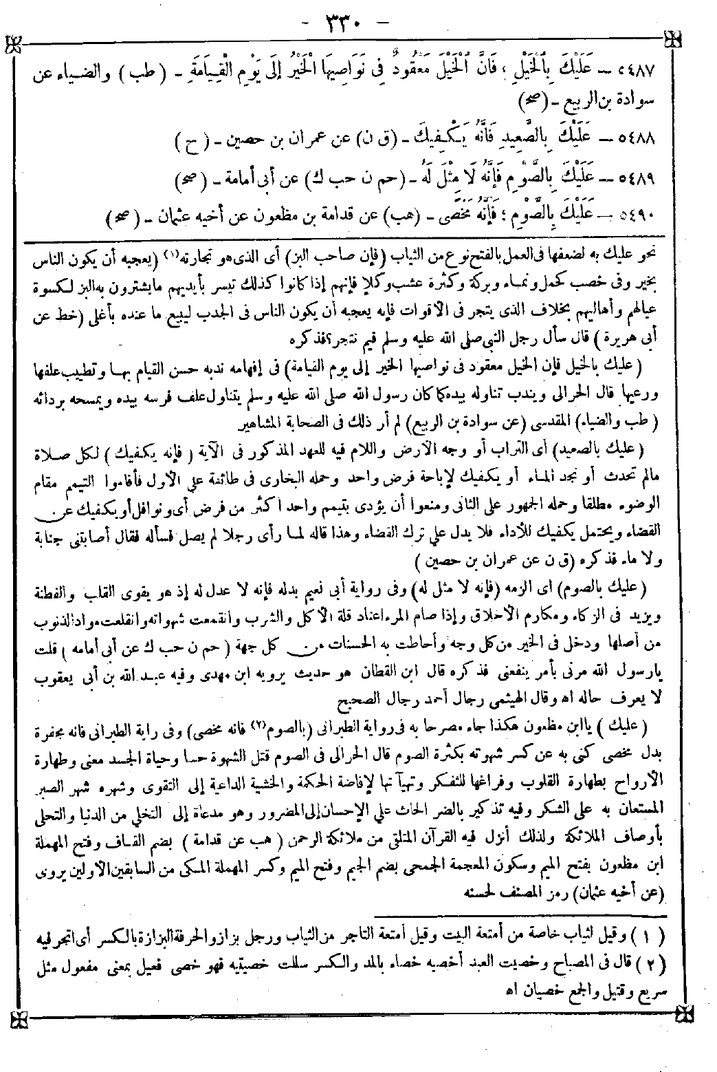 5487 - (عليك بالخيل فإن الخيل معقود في نواصيها الخير إلى يوم القيامة) في إفهامه ندبه حسن القيام بها وتطييب علفها ورعيها قال الحرالي: ويندب تناوله بيده كما كان رسول الله صلى الله عليه وسلم يتناول علف فرسه بيده ويمسحه بردائه