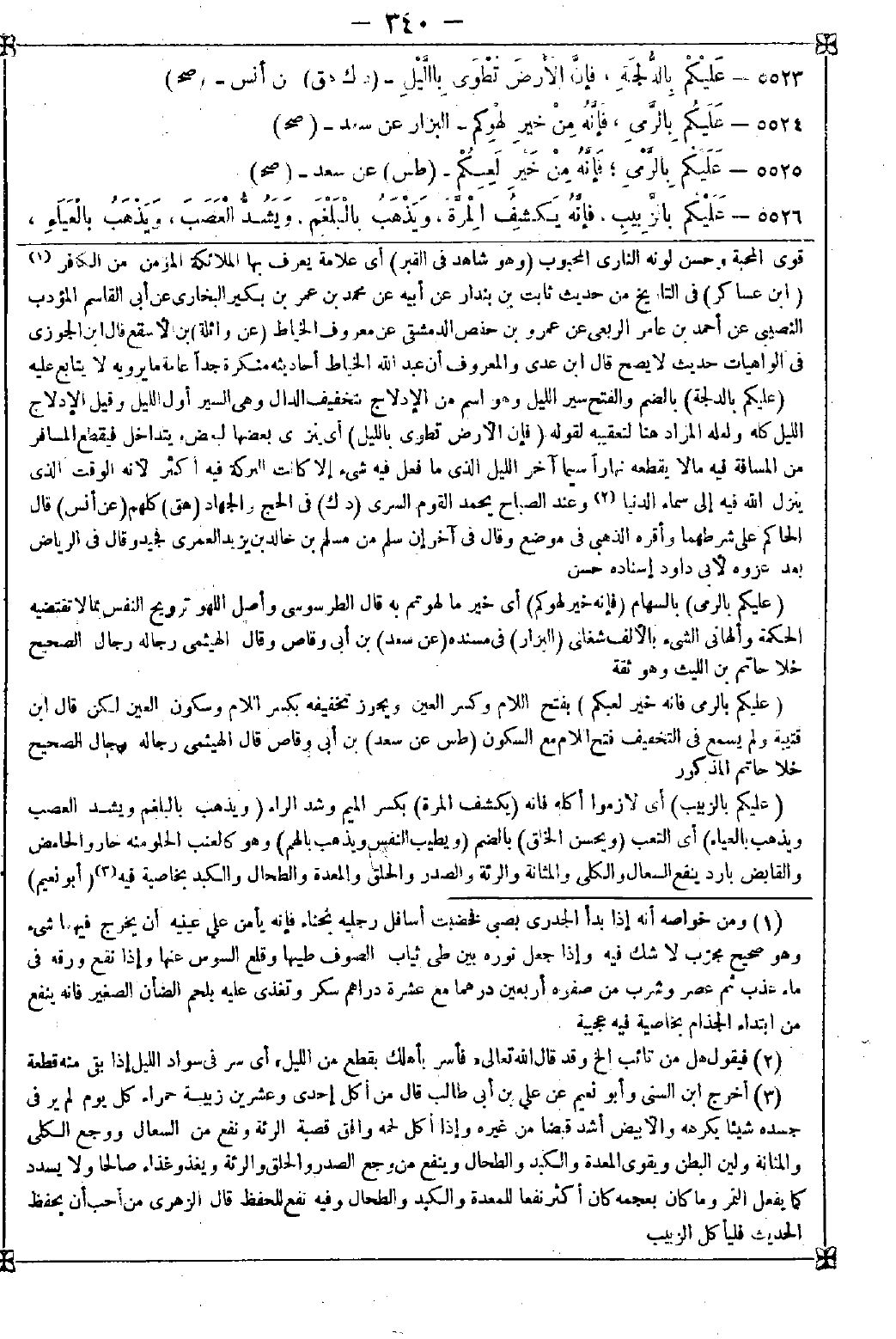 (1) أخرج ابن السني وأبو نعيم عن علي بن أبي طالب قال: من أكل إحدى وعشرين زبيبة حمراء كل يوم لم ير جسده شيئا يكرهه والأبيض أشد قبضا من غيره وإذا أكل لحمه وافق قصبة الرئة ونفع من السعال ووجع الكلى والمثانة ولين البطن ويقوي المعدة والكبد والطحال وينفع من وجع الصدر والحلق والرئة ويغذو غذاء صالحا ولا يسدد كما يفعل التمر وما كان بعجمه كان أكثر نفعا للمعدة والكبد والطحال وفيه نفع للحفظ قال الزهري: من أحب أن يحفظ الحديث فليأكل الزبيب