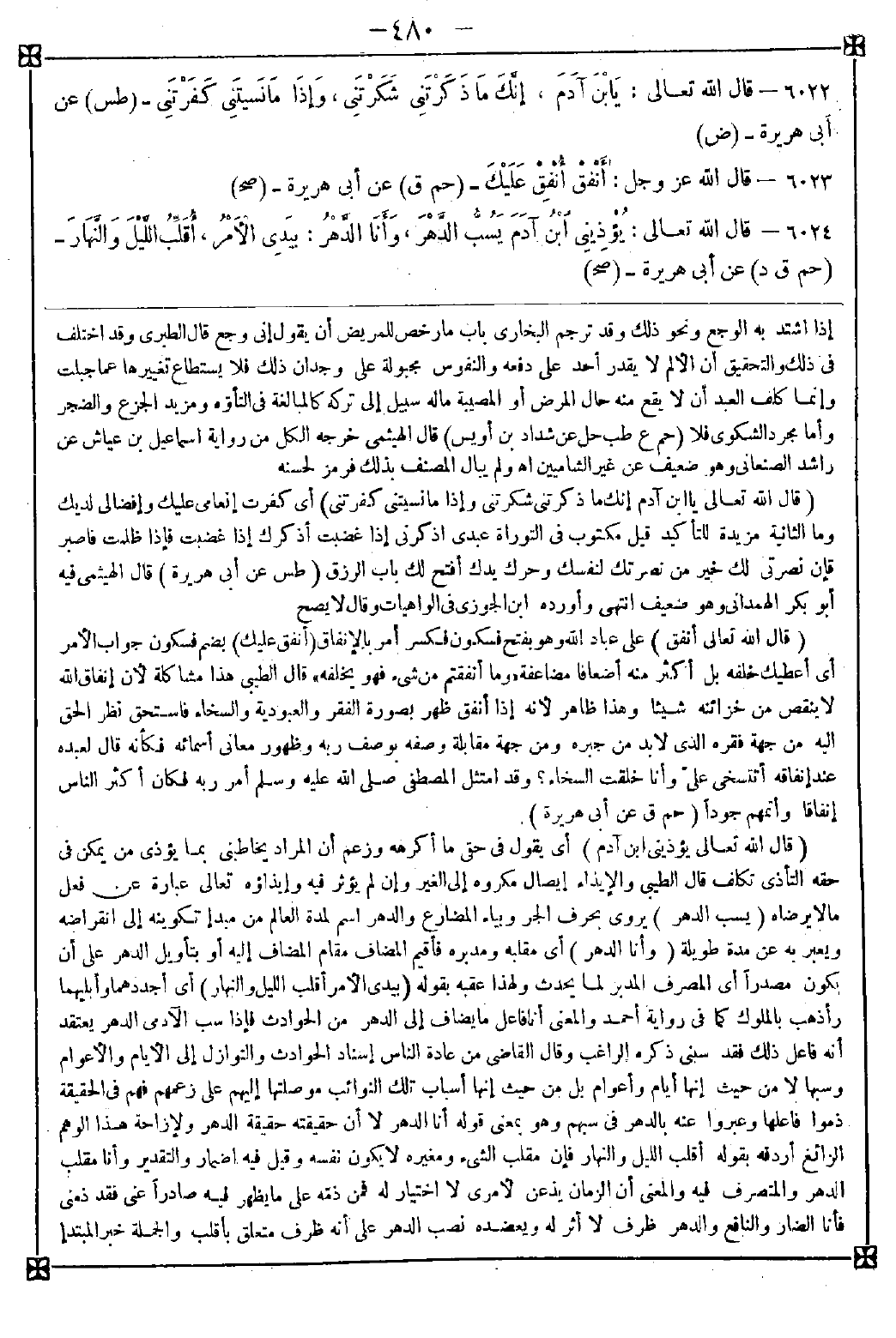 6022 - (قال الله تعالى يا ابن آدم إنك ما ذكرتني شكرتني وإذا ما نسيتني كفرتني) أي كفرت إنعامي عليك وإفضالي لديك وما الثانية مزيدة للتأكيد قيل مكتوب في التوراة عبدي اذكرني إذا غضبت أذكرك إذا غضبت فإذا ظلمت فاصبر فإن نصرتي لك خير من نصرتك لنفسك وحرك يدك أفتح لك باب الرزق