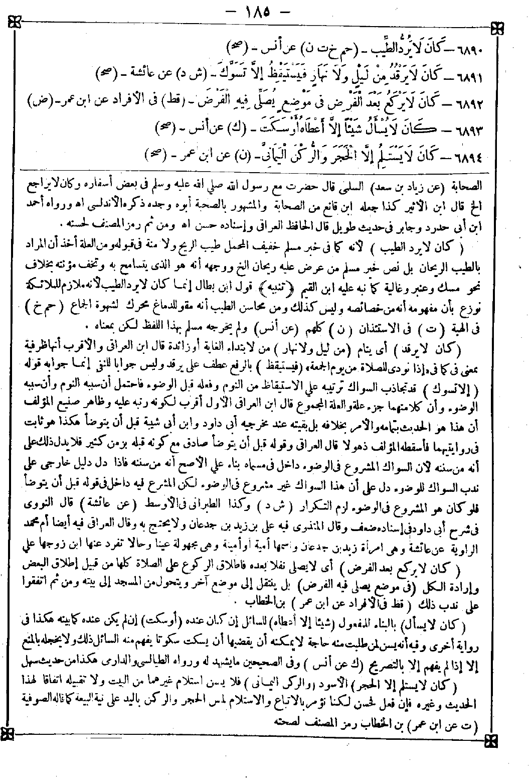6891 - (كان لا يرقد) أي ينام (من ليل ولا نهار) من لابتداء الغاية أو زائدة قال ابن العراقي: والأقرب أنها ظرفية بمعنى في كما في {إذا نودي للصلاة من يوم الجمعة} (فيستيقظ) بالرفع عطف على يرقد وليس جوابا للنفي إنما جوابه قوله (إلا تسوك) قد تجاذب السواك ترتيبه على الاستيقاظ من النوم وفعله قبل الوضوء فاحتمل أن سببه النوم وأن سببه الوضوء وأن كلا منهما جزء علة والعلة المجموع. قال ابن العراقي: الأول أقرب لكونه رتبه عليه وظاهر صنيع المؤلف أن هذا هو الحديث بتمامه والأمر بخلافه بل بقيته عند مخرجيه أبي داود وابن أبي شيبة قبل أن يتوضأ هكذا هو ثابت في روايتيهما فأسقطه المؤلف ذهولا قال العراقي: وقوله قبل أن يتوضأ صادق مع كونه قبله بزمن كثير فلا يدل ذلك على أنه من سننه لأن السواك المشروع في الوضوء داخل في مسماه بناء على الأصح أنه من سننه فإذا دل دليل خارجي على ندب السواك للوضوء دل على أن هذا السواك غير مشروع في الوضوء لكن المشرع فيه داخل في قوله قبل أن يتوضأ فلو كان هو المشروع في الوضوء لزم التكرار