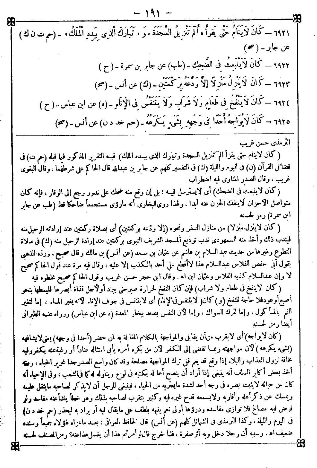 6921 - (كان لا ينام حتى يقرأ الم تنزيل السجدة وتبارك الذي بيده الملك) فيه التقرير المذكور فيما قبله