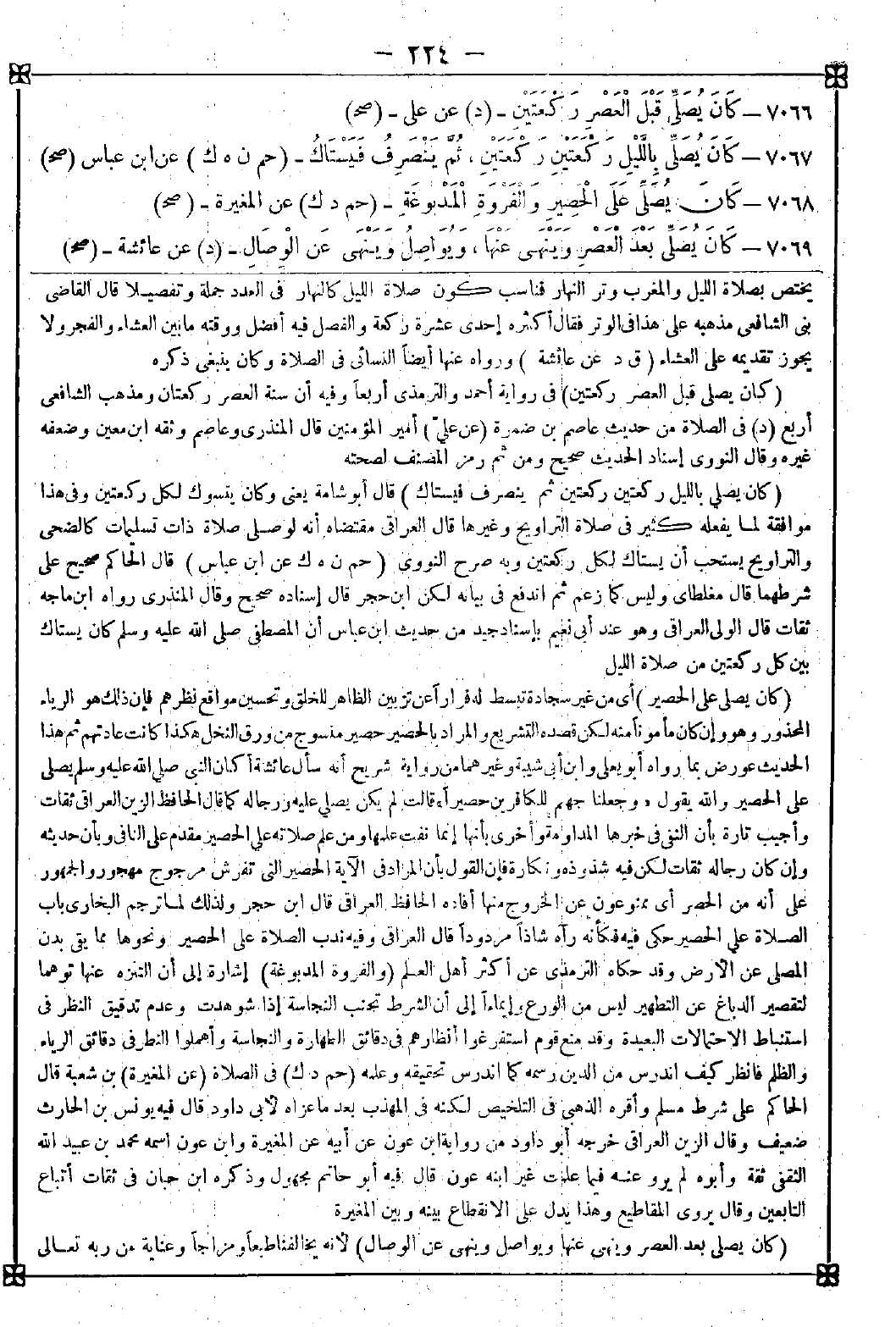 7066 - (كان يصلي قبل العصر ركعتين) في رواية أحمد والترمذي أربعا وفيه أن سنة العصر ركعتان ومذهب الشافعي أربع