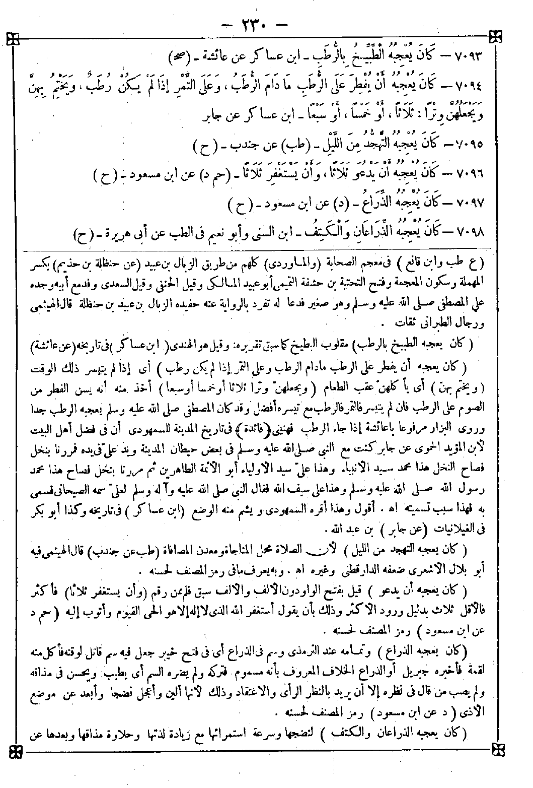 7098 - (كان يعجبه الذراعان والكتف) لنضجها وسرعة استمرائها مع زيادة لذتها وحلاوة مذاقها وبعدها عن -[231]- الأذى زاد في رواية وسم في الذراع وكان يرى أن اليهود سموه فيه