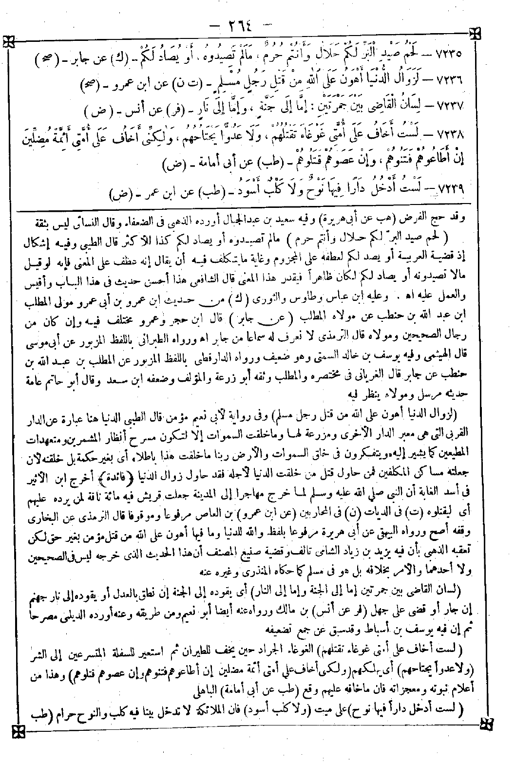 7238 - (لست أخاف على أمتي غوغاء تقتلهم) الغوغاء الجراد حين يخف للطيران ثم استعير للسفلة المتسرعين إلى الشر (ولا عدوا يجتاحهم) أي يهلكهم (ولكني أخاف على أمتي أئمة مضلين إن أطاعوهم فتنوهم وإن عصوهم قتلوهم) وهذا من أعلام نبوته ومعجزاته فإن ما خافه عليهم وقع