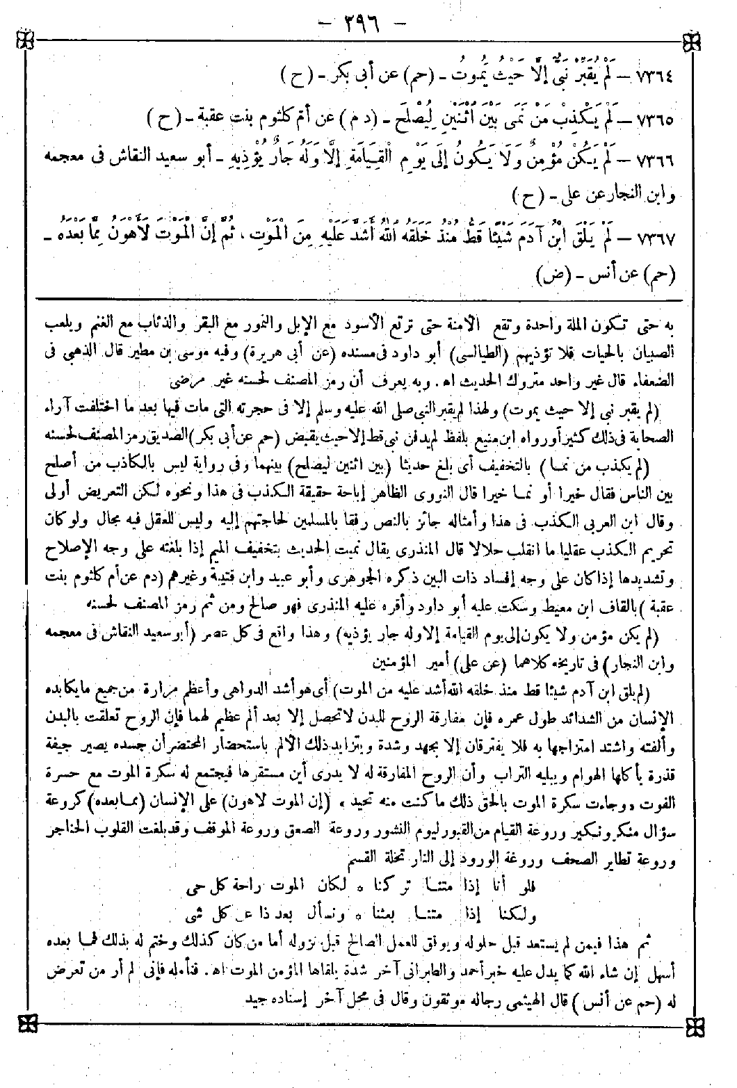 7364 - (لم يقبر نبي إلا حيث يموت) ولهذا لم يقبر النبي صلى الله عليه وسلم إلا في حجرته التي مات فيها بعد ما اختلفت آراء الصحابة في ذلك كثيرا ورواه ابن منيع بلفظ لم يدفن نبي قط إلا حيث يقبض