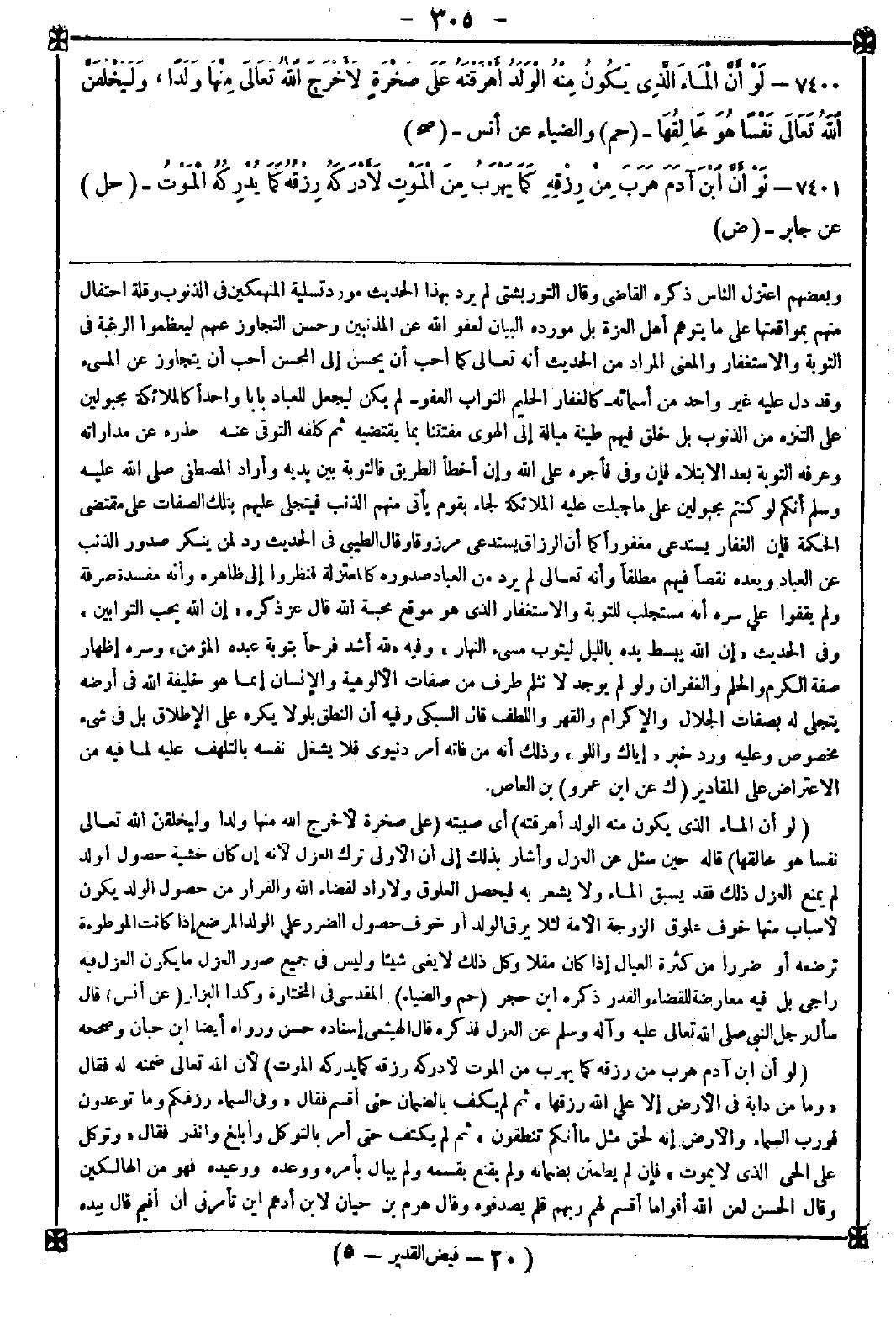 7401 - (لو أن ابن آدم هرب من رزقه كما يهرب من الموت لأدركه رزقه كما يدركه الموت) لأن الله تعالى ضمنه له فقال: {وما من دابة في الأرض إلا على الله رزقها} ثم لم يكف بالضمان حتى أقسم فقال: {وفي السماء رزقكم وما توعدون فورب السماء والأرض إنه لحق مثل ما أنتم تنطقون} ثم لم يكتف حتى أمر بالتوكل وأبلغ وأنذر فقال: {وتوكل على الحي الذي لا يموت} فإن لم يطمئن بضمانه ولم يقنع بقسمه ولم يبال بأمره ووعده ووعيده فهو من الهالكين وقال الحسن: لعن الله أقواما أقسم لهم ربهم فلم يصدقوه وقال هرم بن حيان لابن أدهم: أين تأمرني أن أقيم قال بيده: -[306]- إلى الشام قال: وكيف المعيشة فيها قال: أف لهذه القلوب لقد خالطها الشك فما تنفعها الموعظة