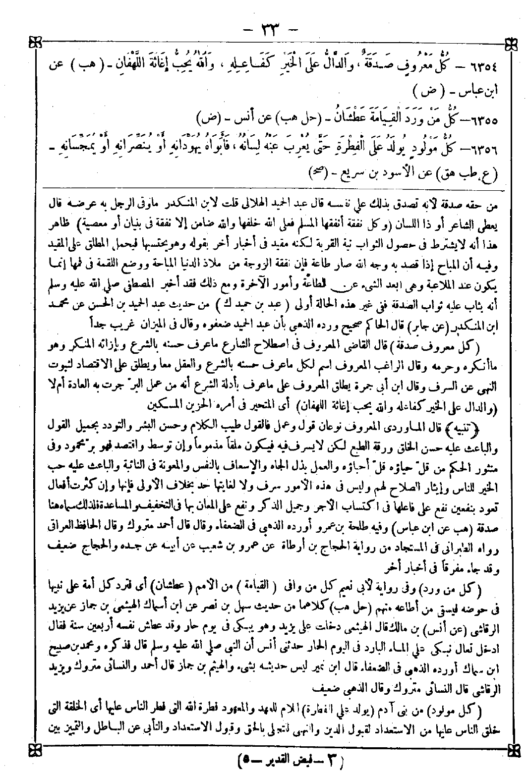 6356 - (كل مولود) من بني آدم (يولد على الفطرة) اللام للعهد والمعهود فطرة الله التي فطر الناس عليها أي الخلقة التي خلق الناس عليها من الاستعداد لقبول الدين والنهي لتتجلى بالحق وقبول الاستعداد والتأبي عن الباطل والتمييز بين -[34]- الخطأ والصواب (حتى يعرب عنه لسانه) فحينئذ إن ترك بحاله وخلى وطبعه ولم يتعرض له من الخارج من يصده عن النظر الصحيح من فساد التربية وتقليد الأبوين والألف بالمحسوسات والانهماك في الشهوات ونحو ذلك لينظر فيما نصب من الدلالة الجلية على التوحيد وصدق الرسول صلى الله عليه وسلم وغير ذلك نظرا صحيحا يوصله إلى الحق وإلى الرشد عرف الصواب ولزم ما طبع عليه في الأصل ولم يختر إلا الملة الحنيفية وإن لم ينكر بحاله بأن كان أبواه نحو يهوديين أو نصرانيين (فأبواه) هما اللذان (يهودانه) أي يصيرانه يهوديا بأن يدخلاه في دين اليهودية المحرف المبدل بتفويتهما له (أو ينصرانه) أي يصيرانه نصرانيا (أو يمجسانه) أي يدخلانه المجوسية كذلك بأن يصداه عما ولد عليه ويزينا له الملة المبدلة والنحل الزائفة ولا ينافيه {لا تبديل لخلق الله} لأن المراد به لا ينبغي أن تبدل تلك الفطرة التي من شأنها أن لا تبدل أو هو خبر بمعنى النهي ذكره البيضاوي وقال الطيبي: الفطرة تدل على نوع من الفطر وهو الابتداء والاختراع والمعنى بها هنا تمكن الناس من الهدى في أصل الجبلة بالتهيئ لقبول الدين فلو ترك عليها استمر على لزومها ولم يفارقها لغيرها لأن هذا الدين حسنه مركوز في النفوس وإنما يعدل عنه بآفة من الآفات البشرية والتقليد والفاء في فأبواه للتعقيب أو للتسبب أي إذا تقرر ذلك فمن تغير كان بسبب أبويه انتهى. والحاصل أن الإنسان مفطور على التهيئ للإسلام بالقوة لكن لا بد من تعلمه بالفعل فمن قدر الله كونه من أهل السعادة قيض الله له من يعلمه سبيل الهدى فصار مهذبا بالفعل ومن خذله وأشقاه سبب له من يغير فطرته ويثني عزمته والله سبحانه هو المتصرف في عبيده كيف يشاء {فألهمها فجورها وتقواها} قال الطيبي: فإن قلت أمر الغلام الذي قتله الخضر ينقض هذا البيت لأنه لم يلحق بأبويه بل خيف إلحاقهما به قلت لا ينقض بل يرفعه ويستبد بثباته لأن الخضر نظر إلى عالم الغيب وقتل الغلام وموسى اعتبر عالم الشهادة وظاهر الشرع فأنكر عليه ولذلك لما اعتذر الخضر بالخفى أمسك عنه