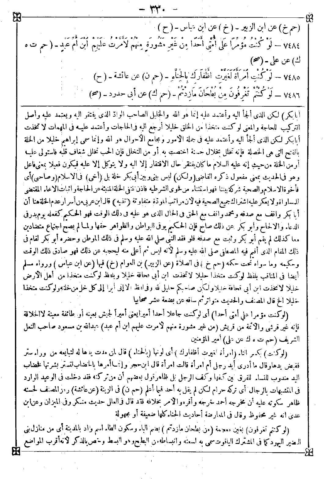 7484 - (لو كنت مؤمرا على أمتي أحدا) أي لو كنت جاعلا أحدا أميرا يعني أميرا لجيش بعينه أو طائفة معينة لا الخلافة فإنه غير قرشي والأئمة من قريش (من غير مشورة منهم لأمرت عليهم ابن أم عبد) عبد الله بن مسعود صاحب النعل الشريف