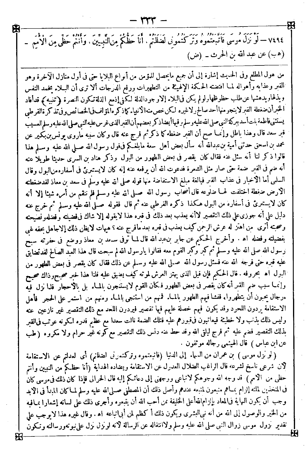 7494 - (لو نزل موسى) بن عمران من السماء إلى الدنيا (فاتبعتموه وتركتموني لضللتم) أي لعدلتم عن الاستقامة لأن شرعي ناسخ لشرعه. قال الراغب: الضلال العدول عن الاستقامة ويضاده الهداية (أنا حظكم من النبيين وأنتم حظي من الأمم) قد وجه الله وجوهكم لاتباعي ووجهني إلى دعائكم إليه قال الحرالي: فإذا كان ذلك في موسى كان في المتخذين لملته إلزام بما هم متبعون لمتبعه عندهم وأصل ذلك أن المصطفى صلى الله عليه وسلم لما كان المبدأ في الأبد وجب أن يكون النهاية في المعاد بإلزام الله أعلى الخليقة ممن أحب الله أن يتبعوه وأجرى ذلك على لسانه إشعارا بما فيه من الخير والوصول إلى الله من أنه نبي البشرى ويكون ذلك أكظم لمن أبى اتباعه اه. وقال غيره: هذا لا يوجب على تقدير نزول موسى زوال النبي صلى الله عليه وسلم ولا انتقاله عن الرسالة لأنه لو نزل نزل على نبوته ورسالته وتكون -[334]- الشريعة شريعة محمد صلى الله عليه وسلم كما كانت في عصر إبراهيم لإبراهيم دون لوط وفي زمن عيسى له دون يحيى فالمعنى أنه لو كان في زمني لكان عليكم اتباعي فإن تركتم ما أمرتم به ضللتم وخسرتم