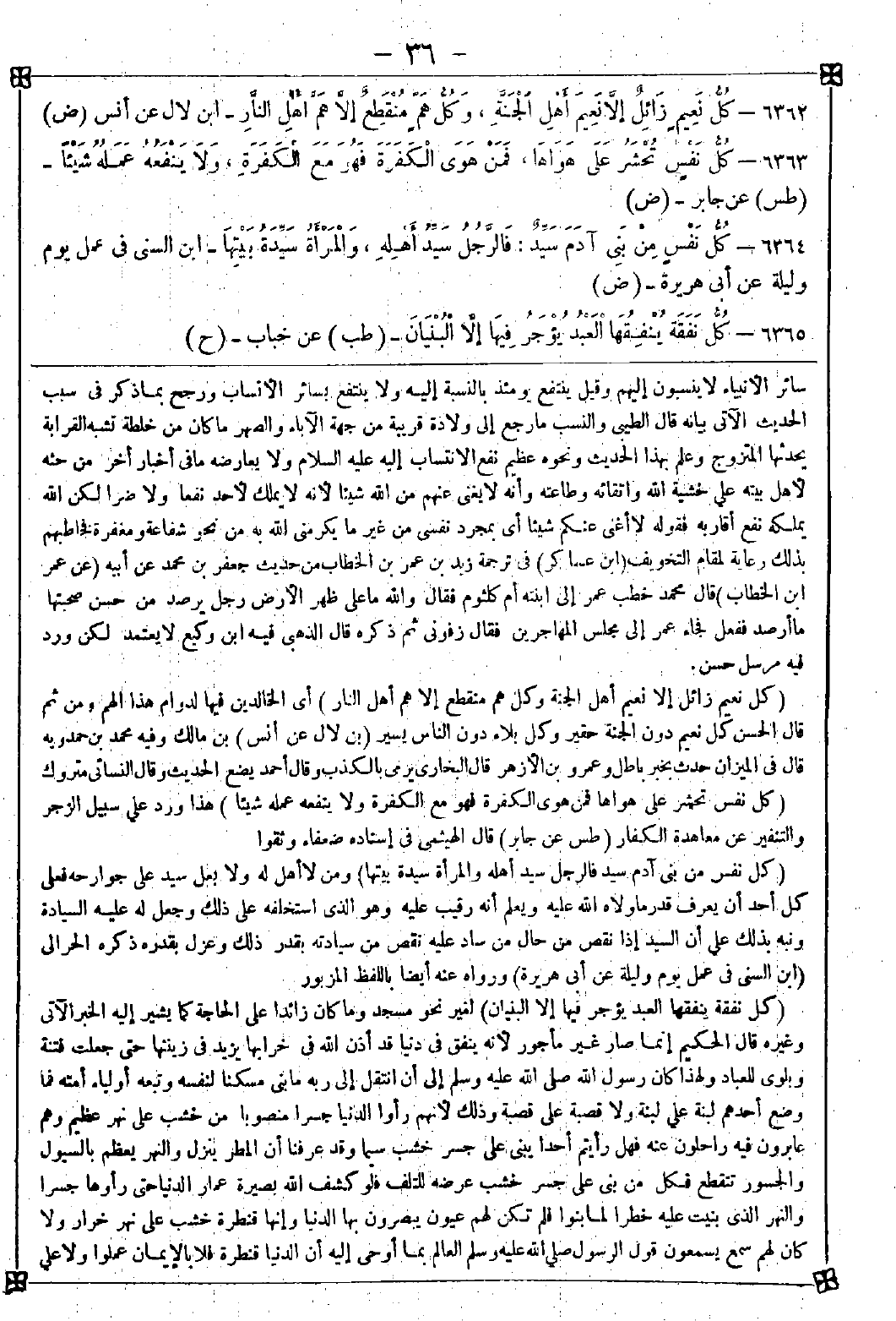 6364 - (كل نفس من بني آدم سيد فالرجل سيد أهله والمرأة سيدة بيتها) ومن لا أهل له ولا بعل سيد على جوارحه فعلى كل أحد أن يعرف قدر ما ولاه الله عليه ويعلم أنه رقيب عليه وهو الذي استخلفه على ذلك وجعل له عليه السيادة ونبه بذلك على أن السيد إذا نقص من حال من ساد عليه نقص من سيادته بقدر ذلك وعزل بقدره ذكره الحرالي