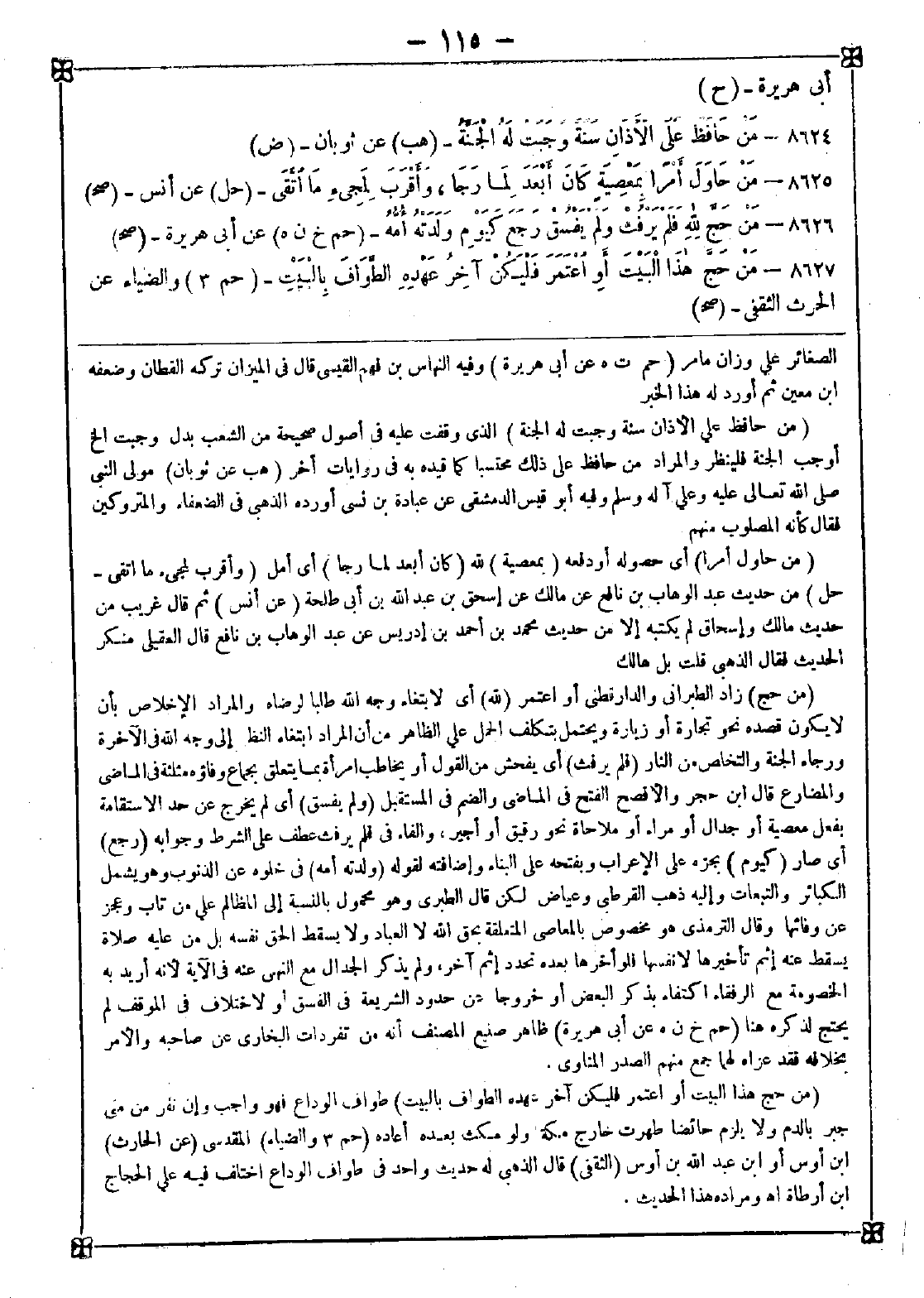 8624 - (من حافظ على الأذان سنة وجبت له الجنة) الذي وقفت عليه في أصول صحيحة من الشعب بدل وجبت إلخ أوجب الجنة فلينظر والمراد من حافظ على ذلك محتسبا كما قيده به في روايات أخر