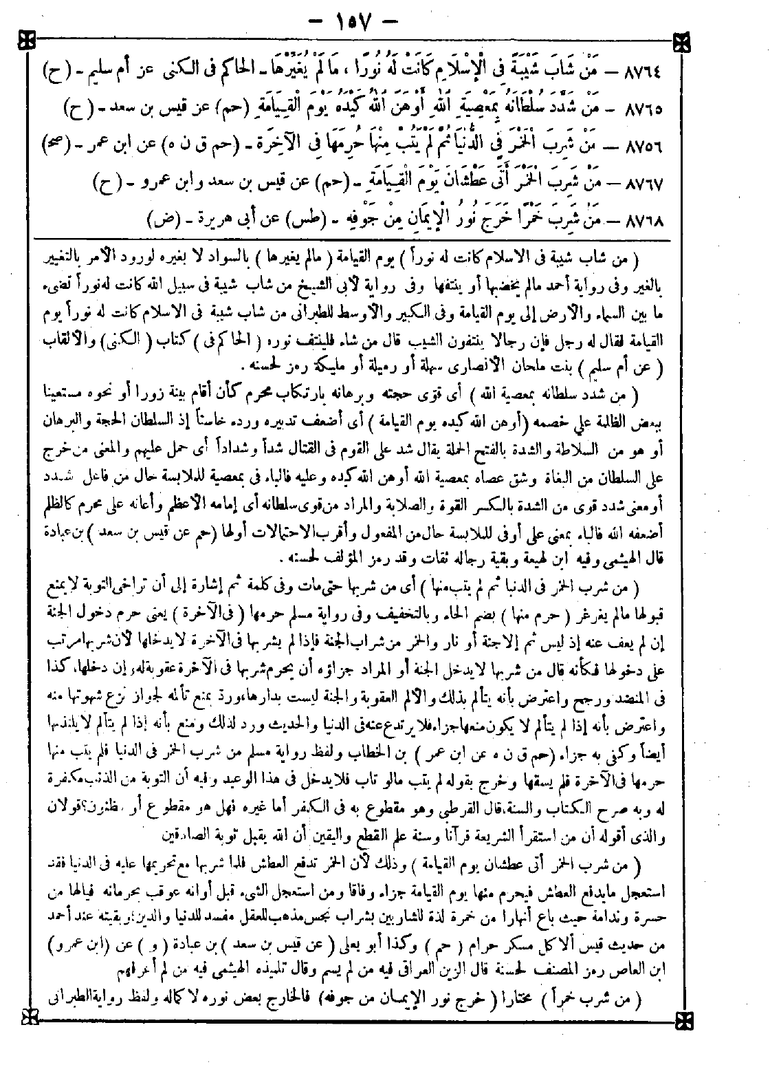 8768 - (من شرب خمرا) مختارا (خرج نور الإيمان من جوفه) فالخارج بعض نوره لا كماله ولفظ رواية الطبراني -[158]- أخرج الله نور الإيمان إلخ
