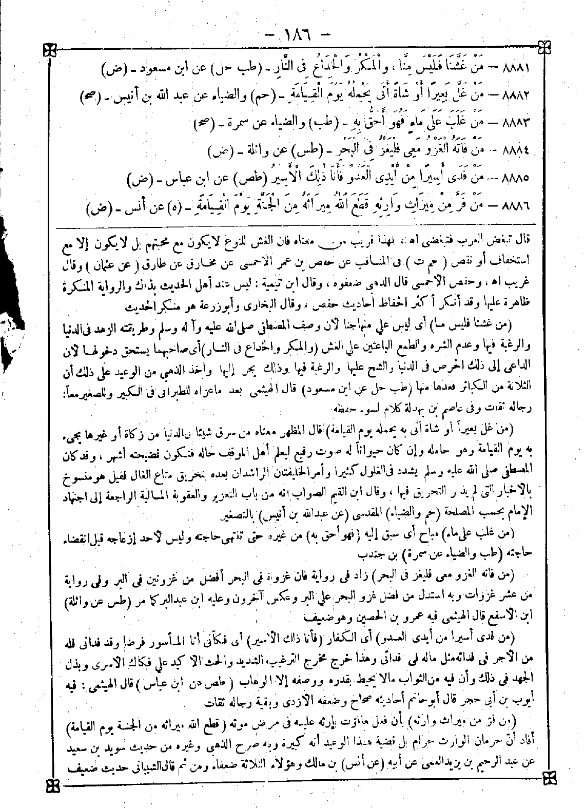 (عن أنس) بن مالك وهؤلاء الثلاثة ضعفاء ومن ثم قال الشيباني حديث ضعيف -[187]- جدا انفرد به ابن ماجه وقال الذهبي في الكبائر: في سنده مقال وقال المنذري: ضعيف