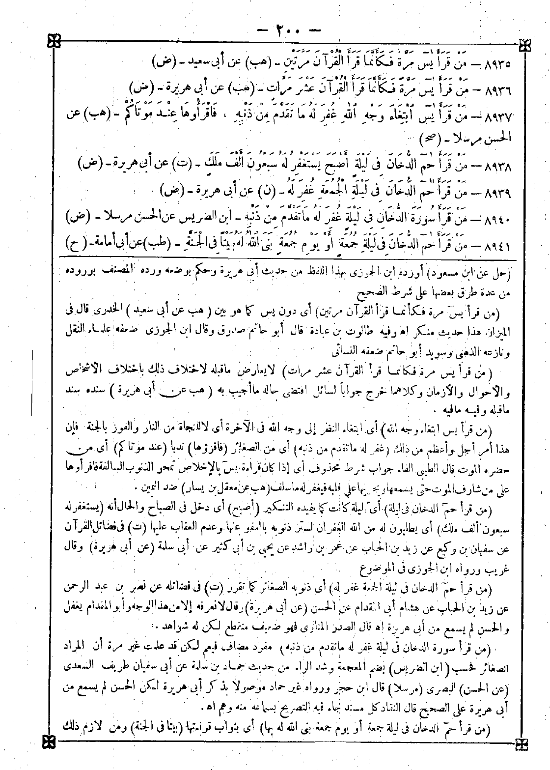 8940 - (من قرأ سورة الدخان في ليلة غفر له ما تقدم من ذنبه) مفرد مضاف فيعم لكن قد علمت غير مرة أن المراد الصغائر فحسب