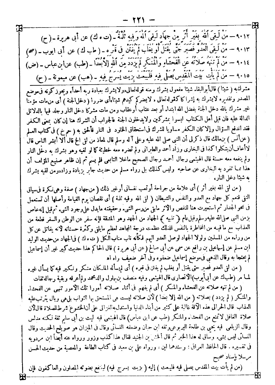 9013 - (من لقي العدو فصبر حتى يقتل أو يغلب لم يفتن في قبره) أي لم يسأله الملكان منكر ونكير فيه كما يسأل غيره لما مر