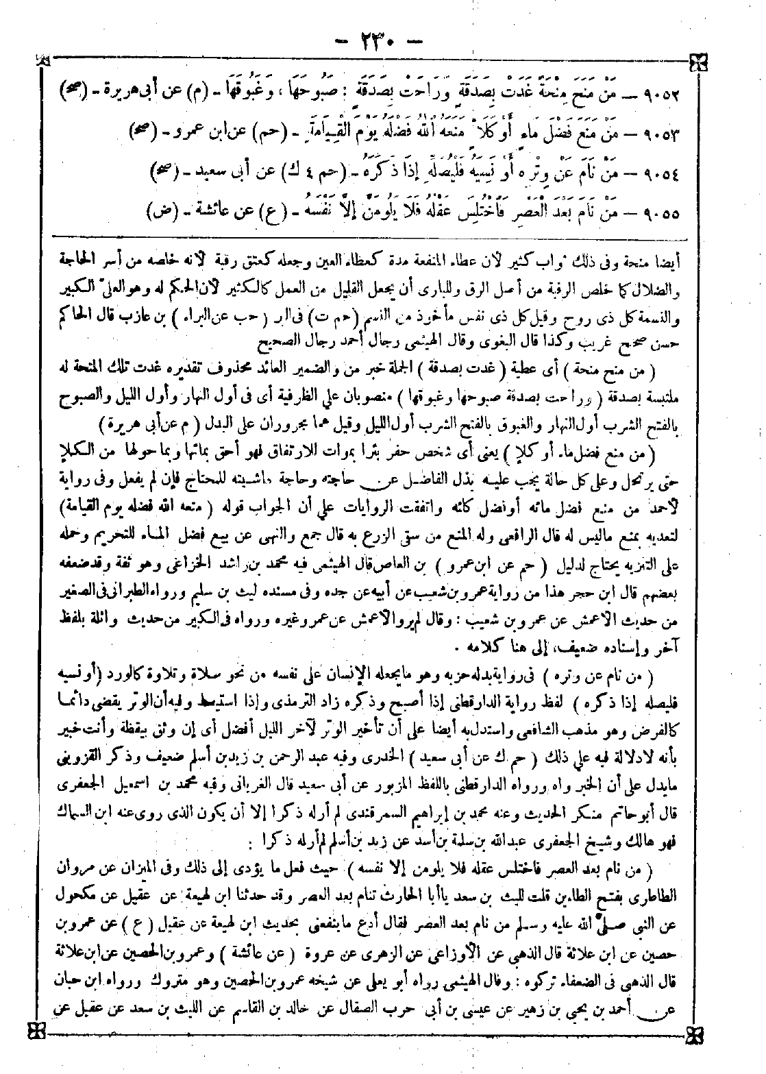 9053 - (من منع فضل ماء أو كلأ) يعني أي شخص حفر بئرا بموات للارتفاق فهو أحق بمائها وبما حولها من الكلأ حتى يرتحل وعلى كل حالة يجب عليه بذل الفاضل عن حاجته وحاجة ماشيته للمحتاج فإن لم يفعل وفي رواية لأحمد من منع فضل مائه أو فضل كلئه واتفقت الروايات على أن الجواب قوله (منعه الله فضله يوم القيامة) لتعديه بمنع ما ليس له قال الرافعي: وله المنع من سقى الزرع به قال جمع: والنهي عن بيع فضل الماء للتحريم وحمله على التنزيه يحتاج لدليل